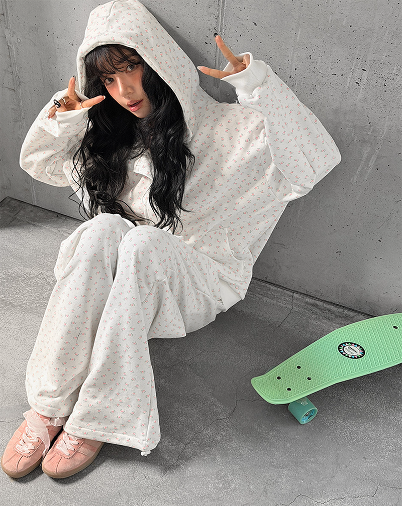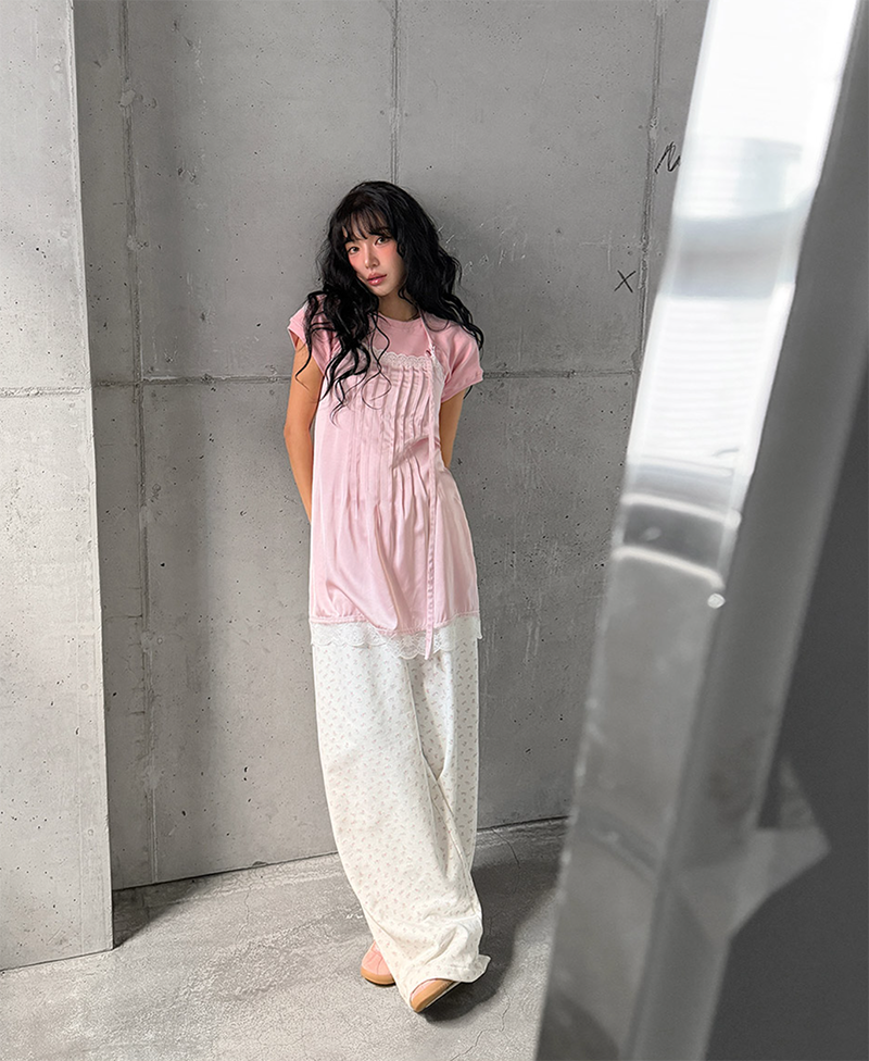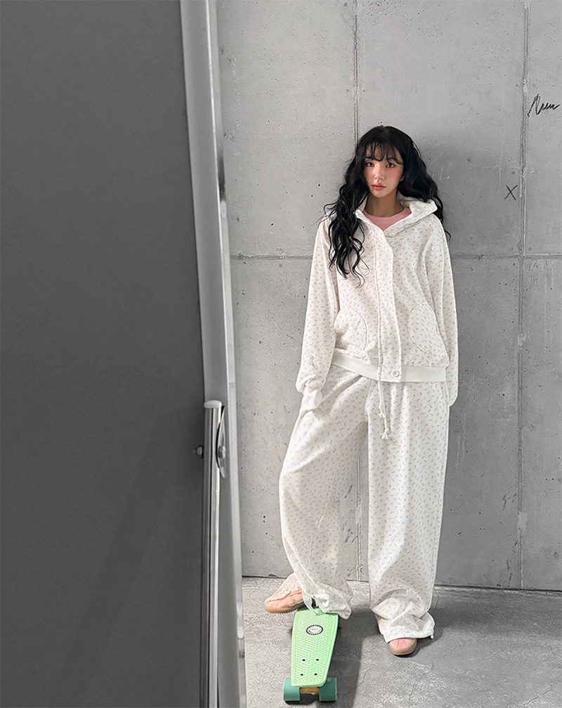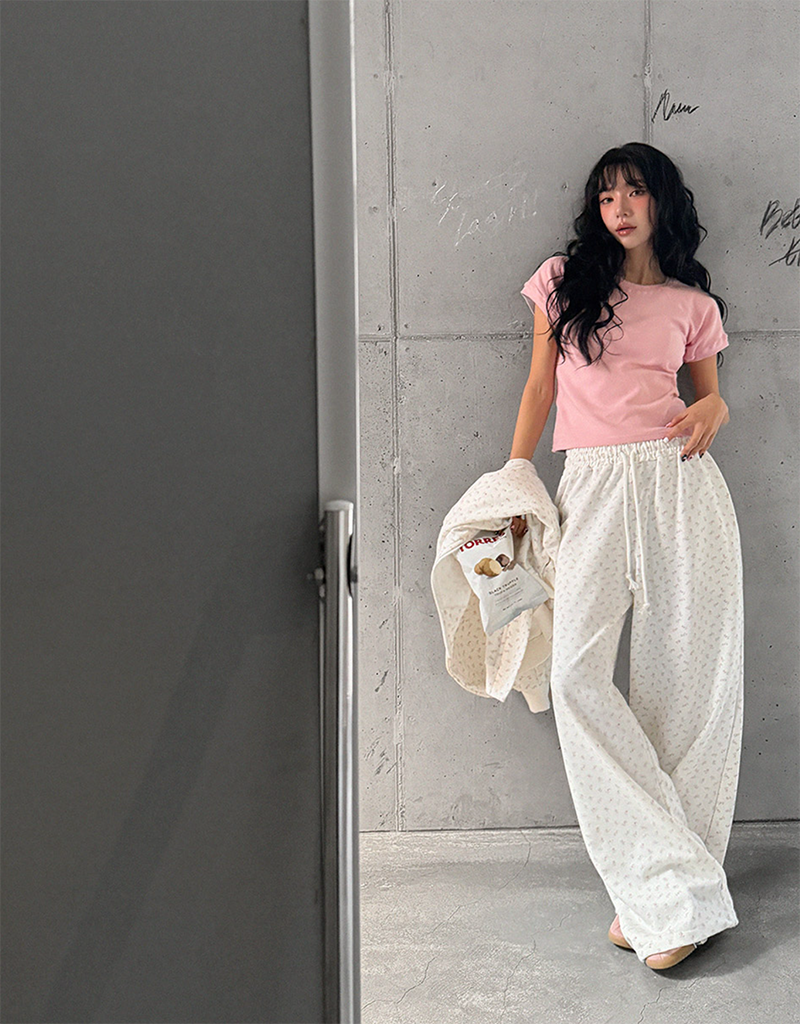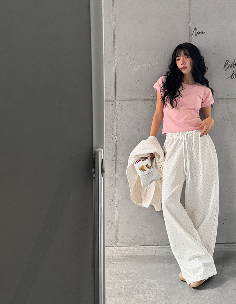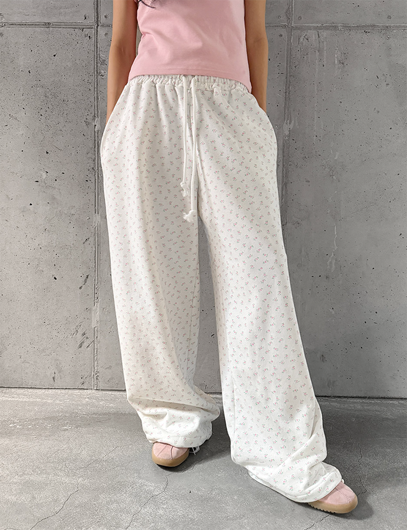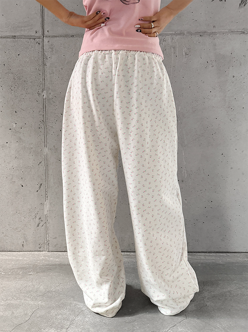 小甜花朵棉質寬長褲