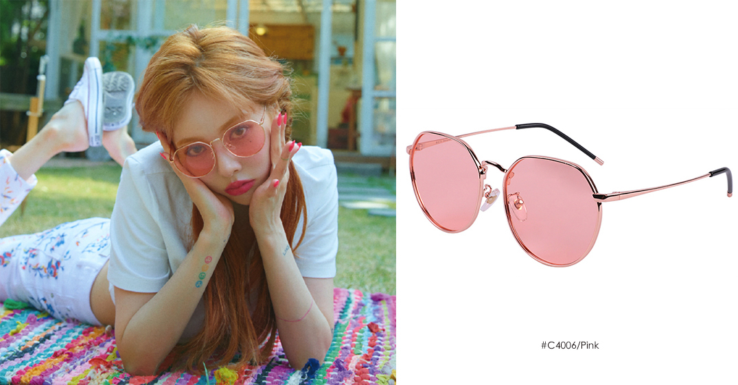 RIETI推出彩色鏡片,泫雅御用的#C4006款粉色,搭配玫瑰金鏡架,展現韓妞態度卻也同時兼具甜美風格!