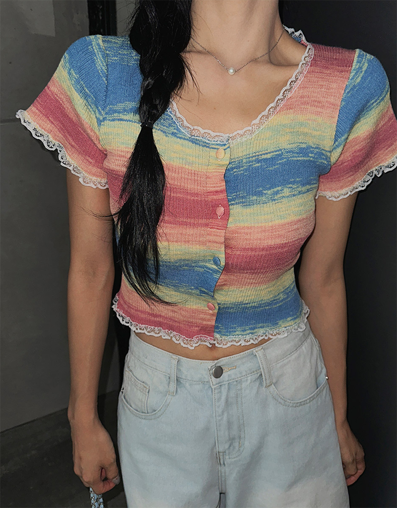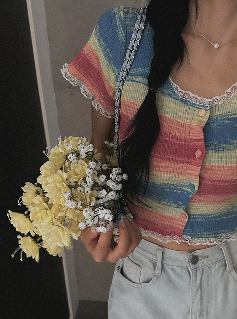 結合彩虹配色與蕾絲荷葉邊