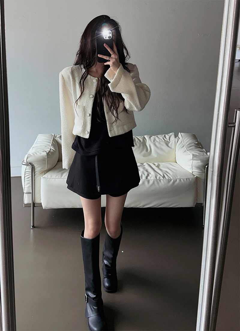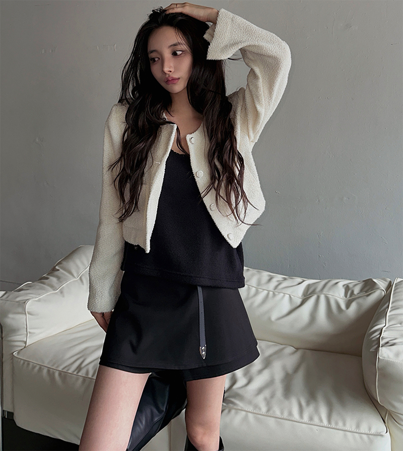 圓領設計與俐落排扣展現經典優雅