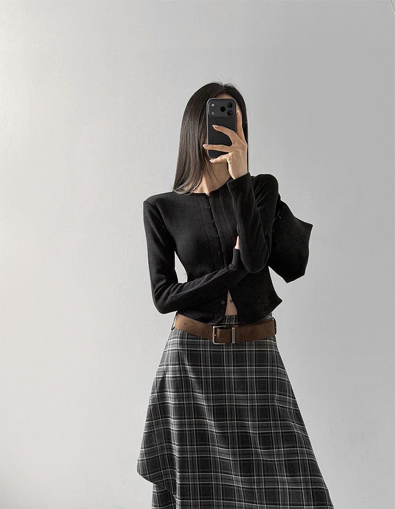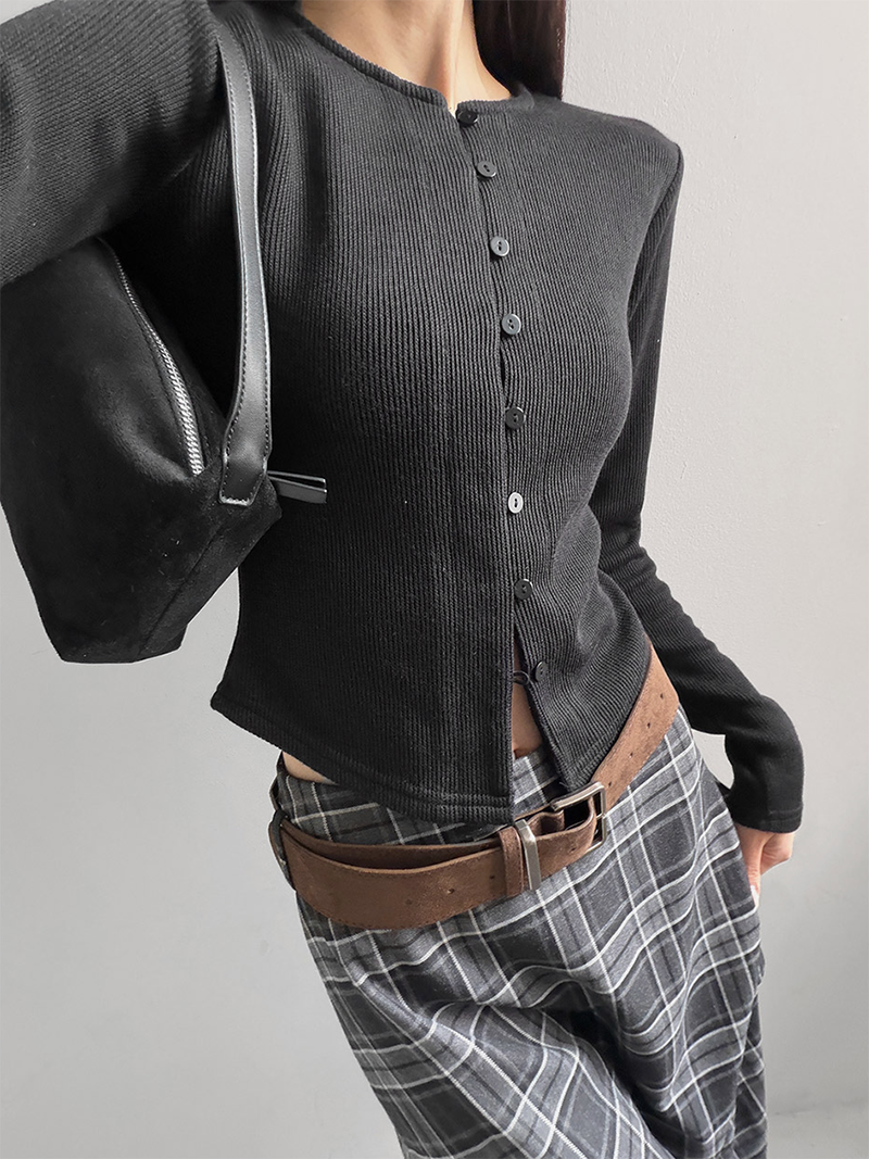 排扣開衫 單穿也很有造型