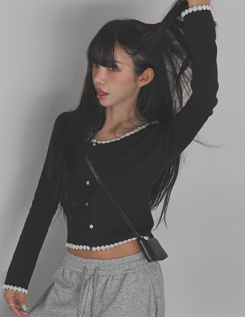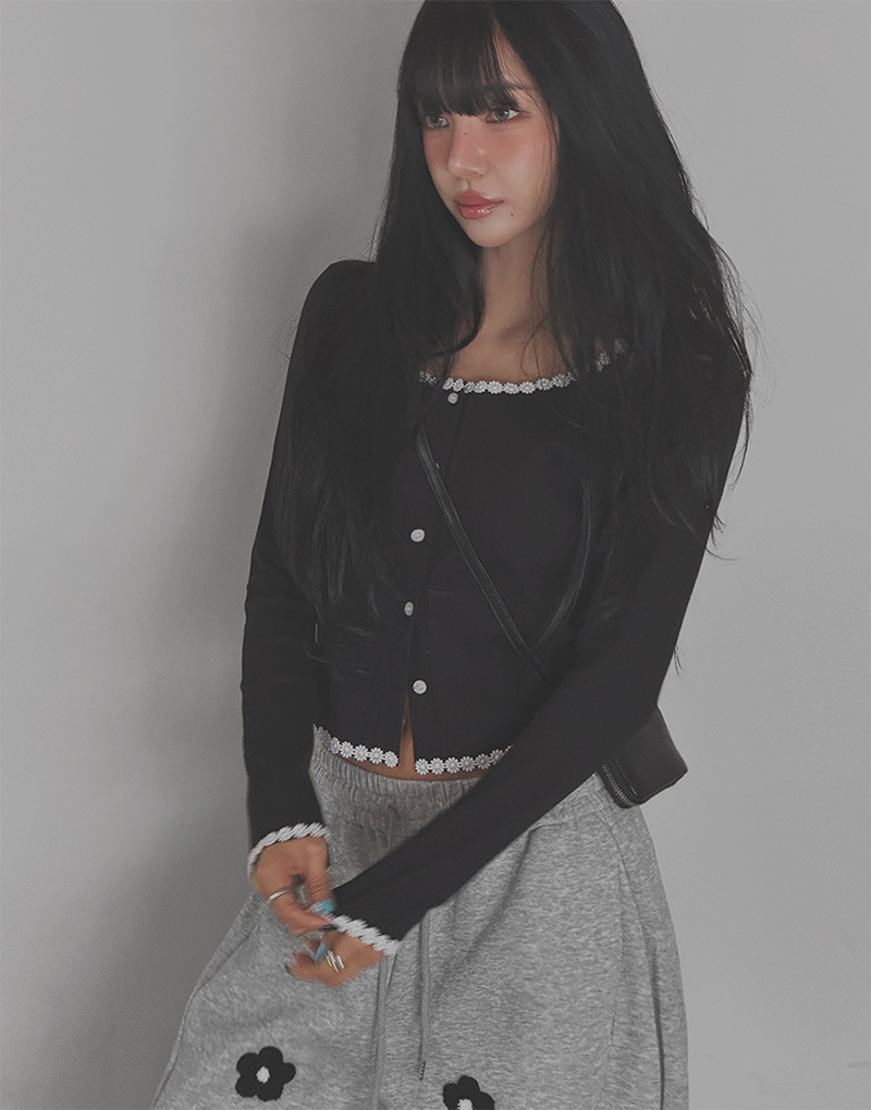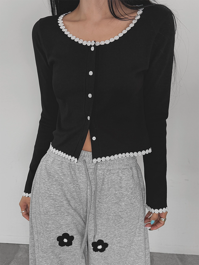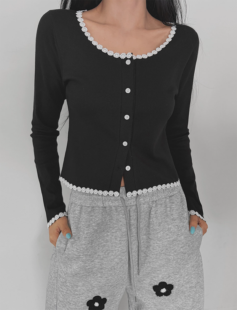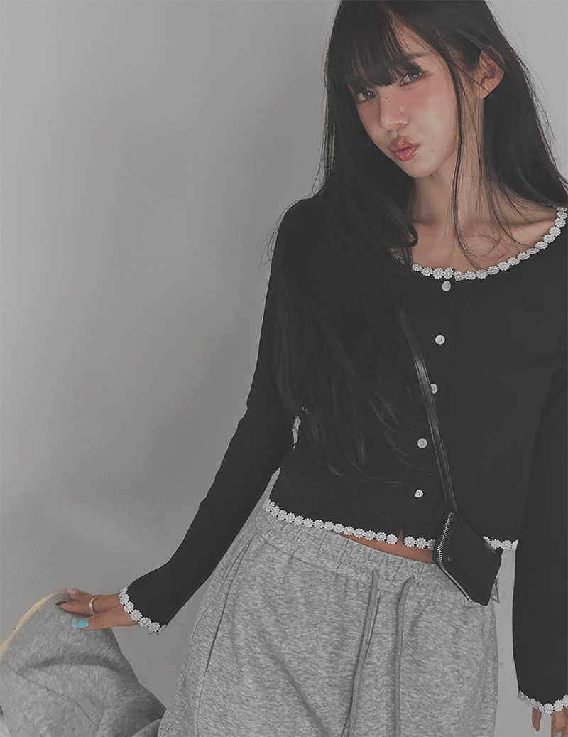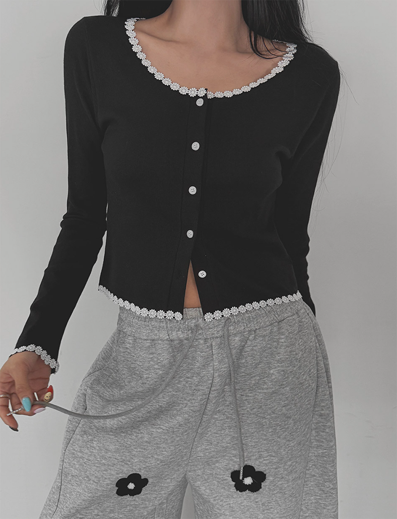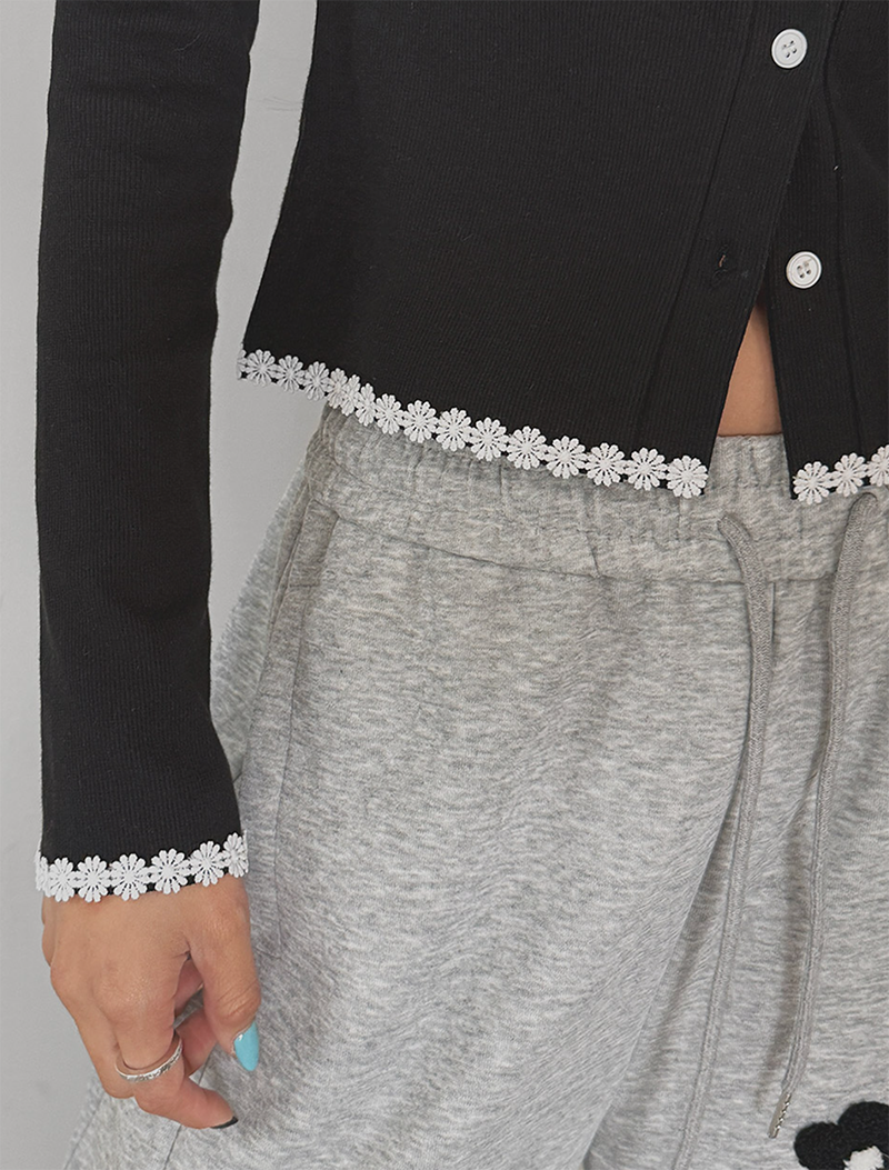 細緻花朵蕾絲點綴於羅紋針織之上