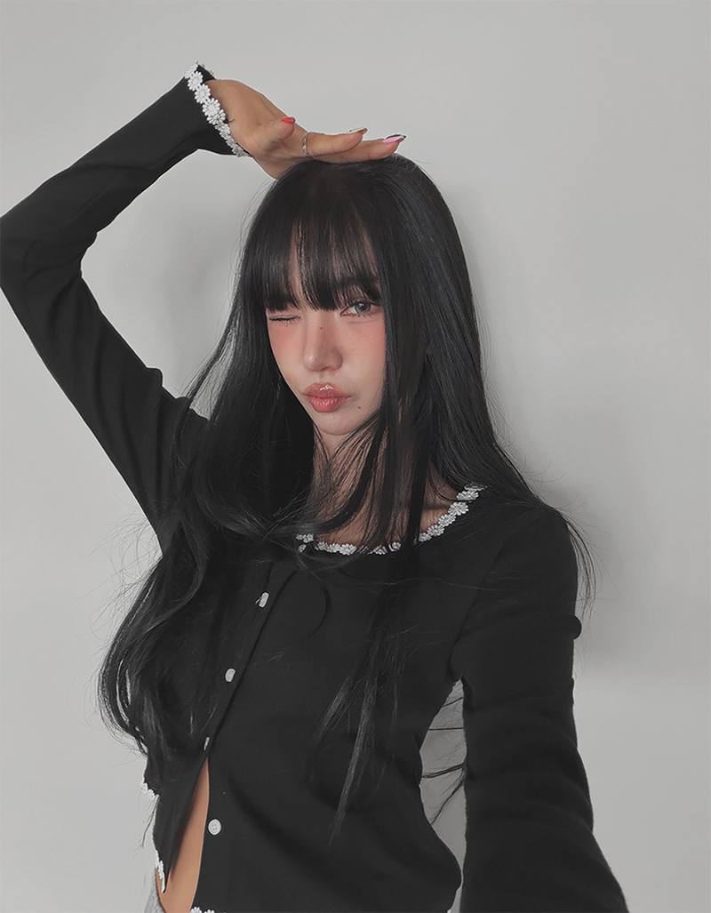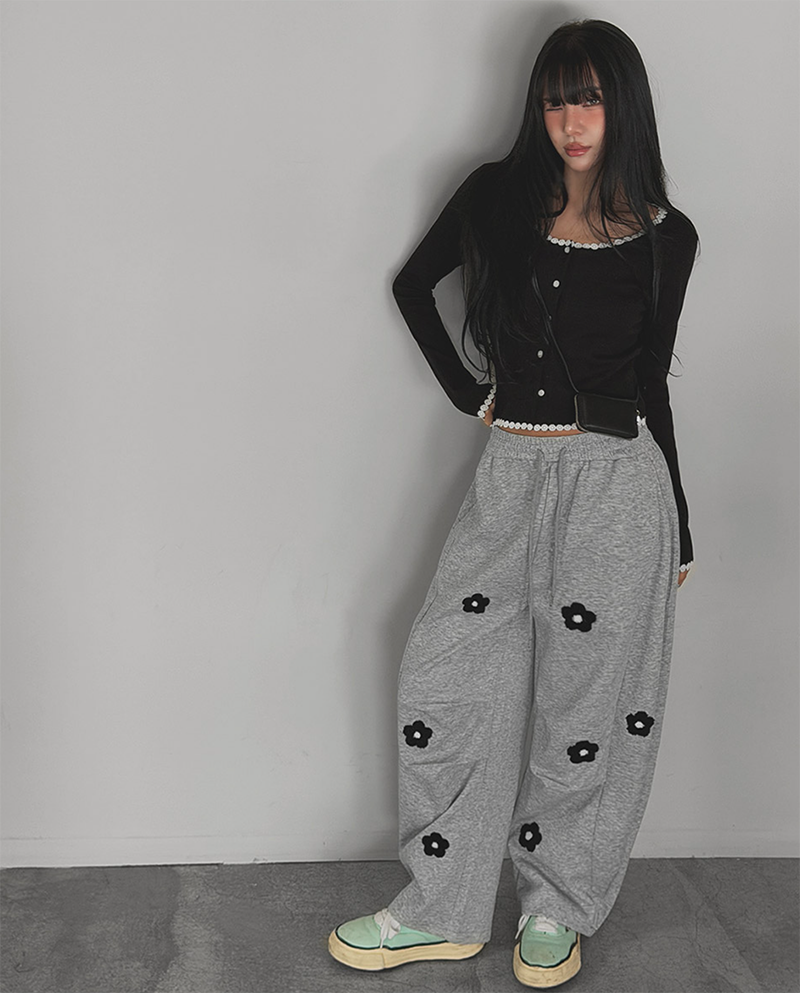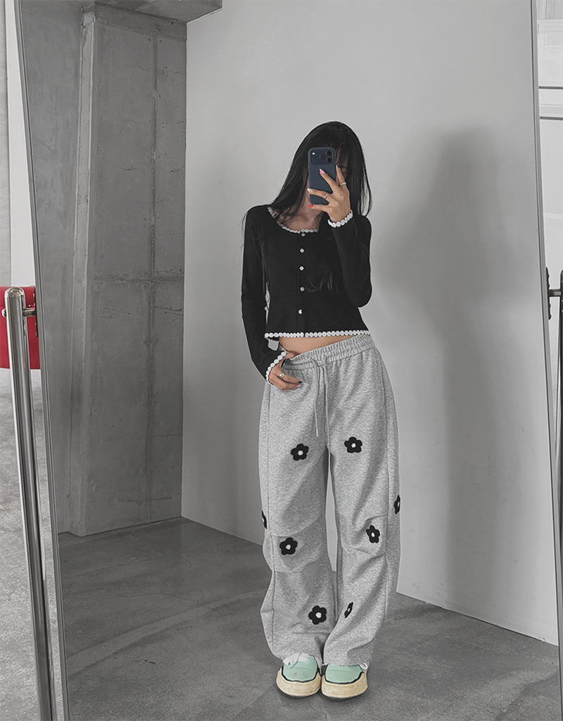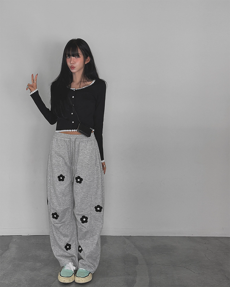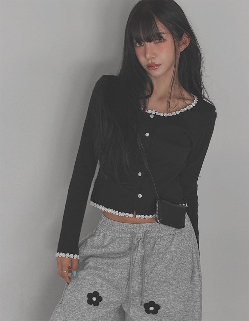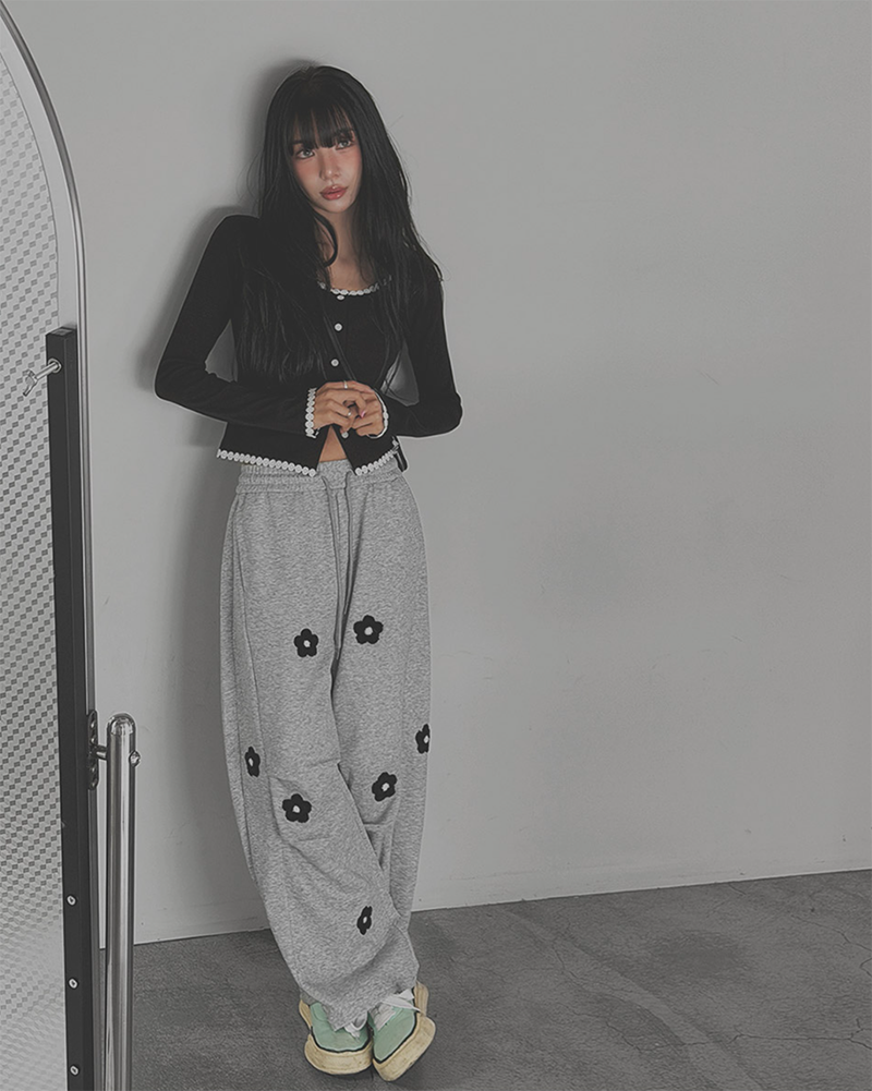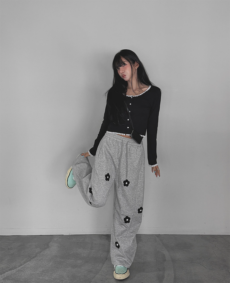 細緻花朵蕾絲點綴於羅紋針織之上