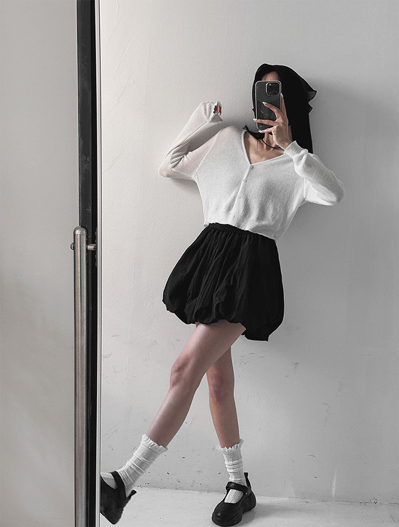 羅紋拼接面料搭配澎澎感下擺