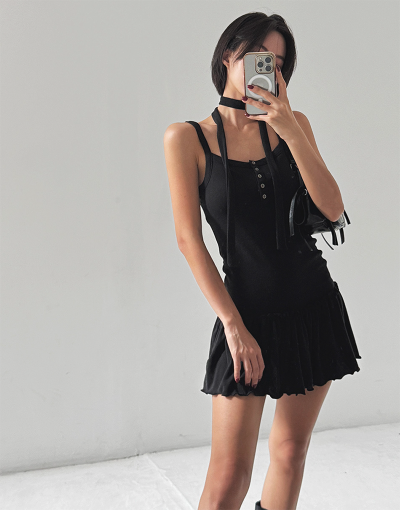 修身羅紋針織面料搭配微開襟鈕扣設計