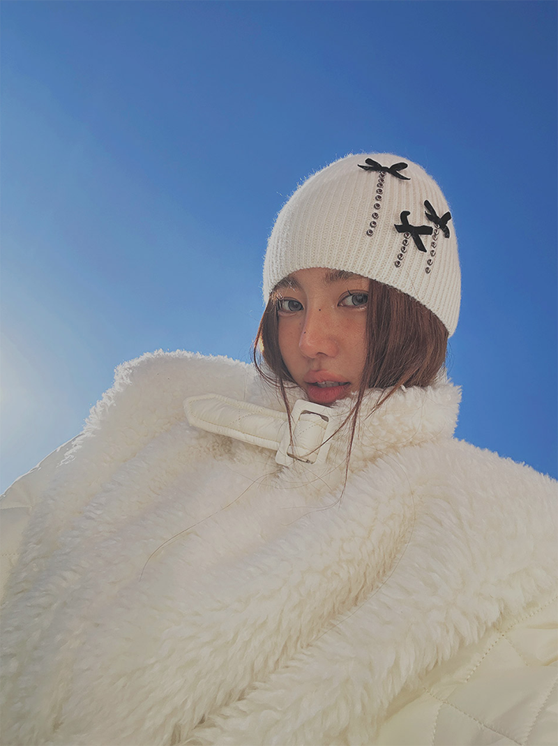 鉚眼搭配緞帶細節展現甜酷平衡感
