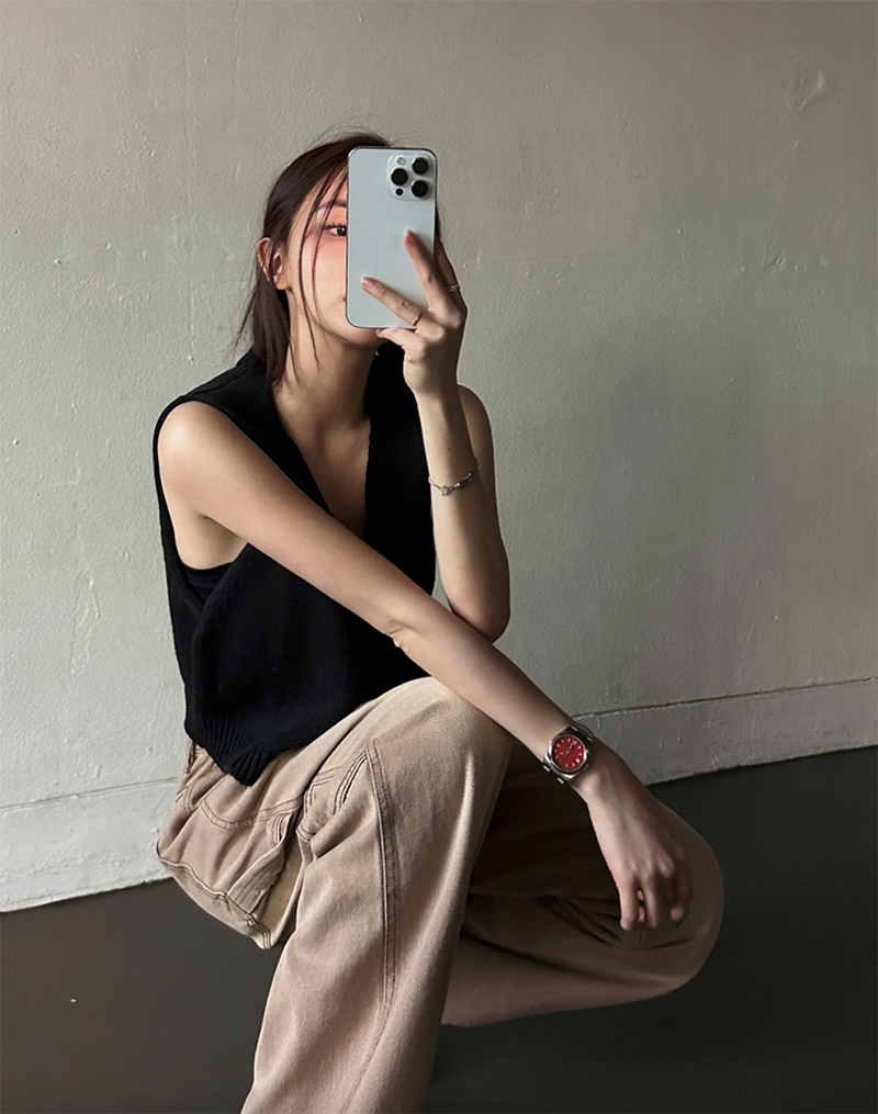 這款丹寧褲以拼接與立體口袋設計展現獨特魅力