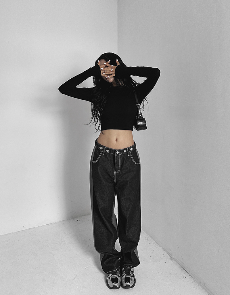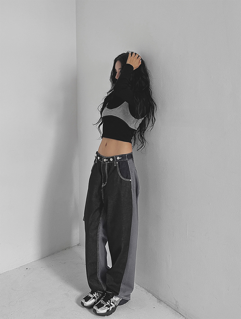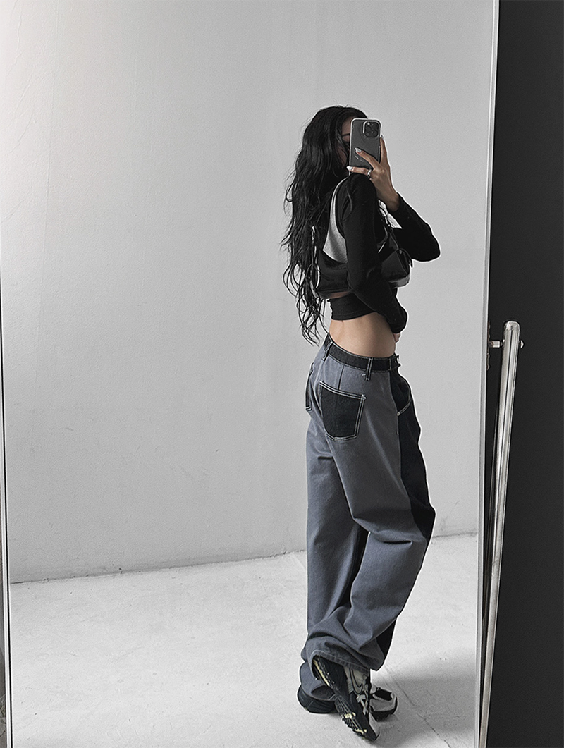 拼色牛仔布料打造視覺層次感