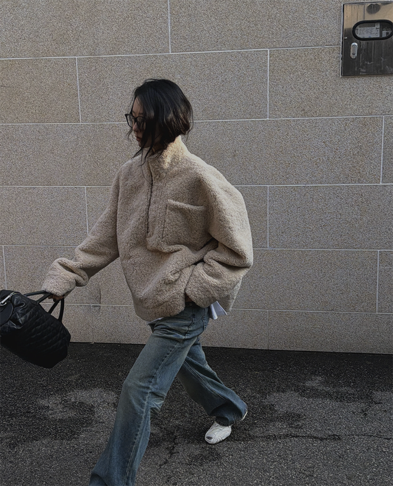 整體寬鬆的版型搭配略微喇叭的褲腳