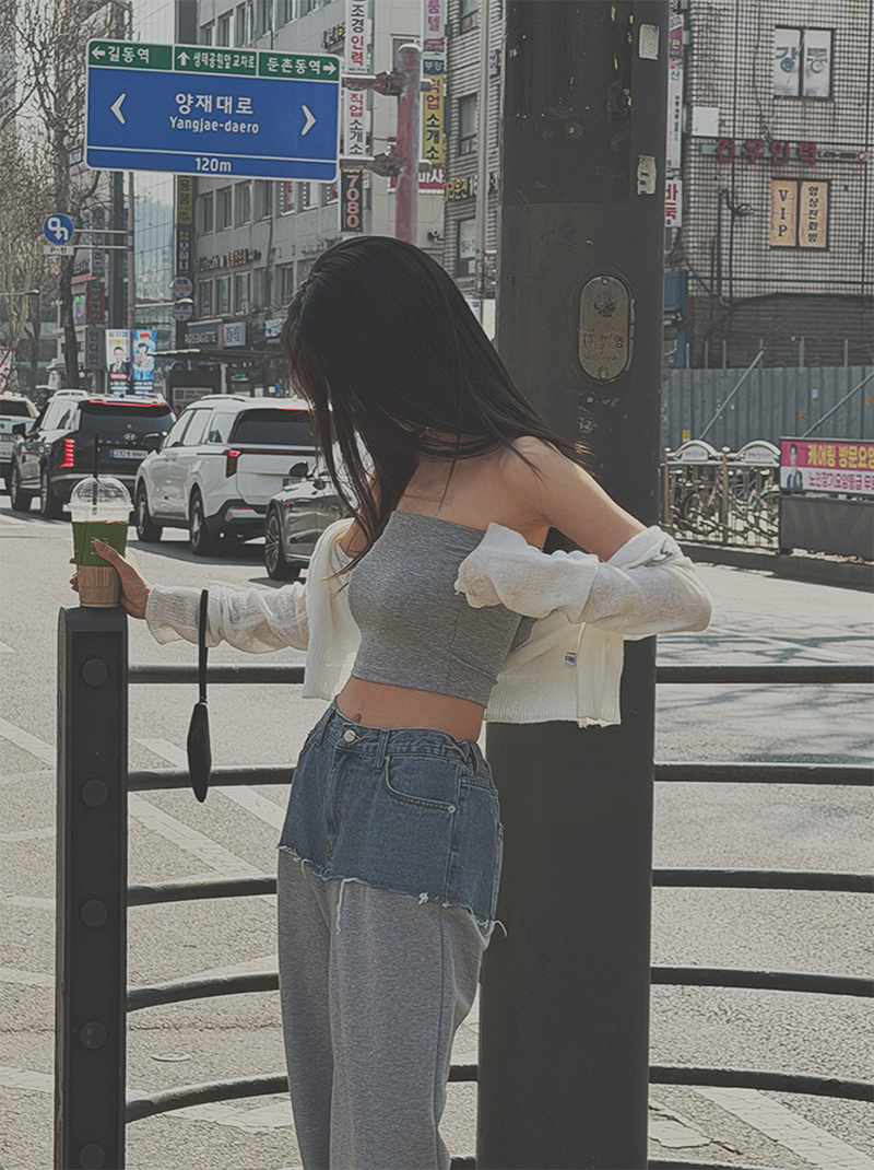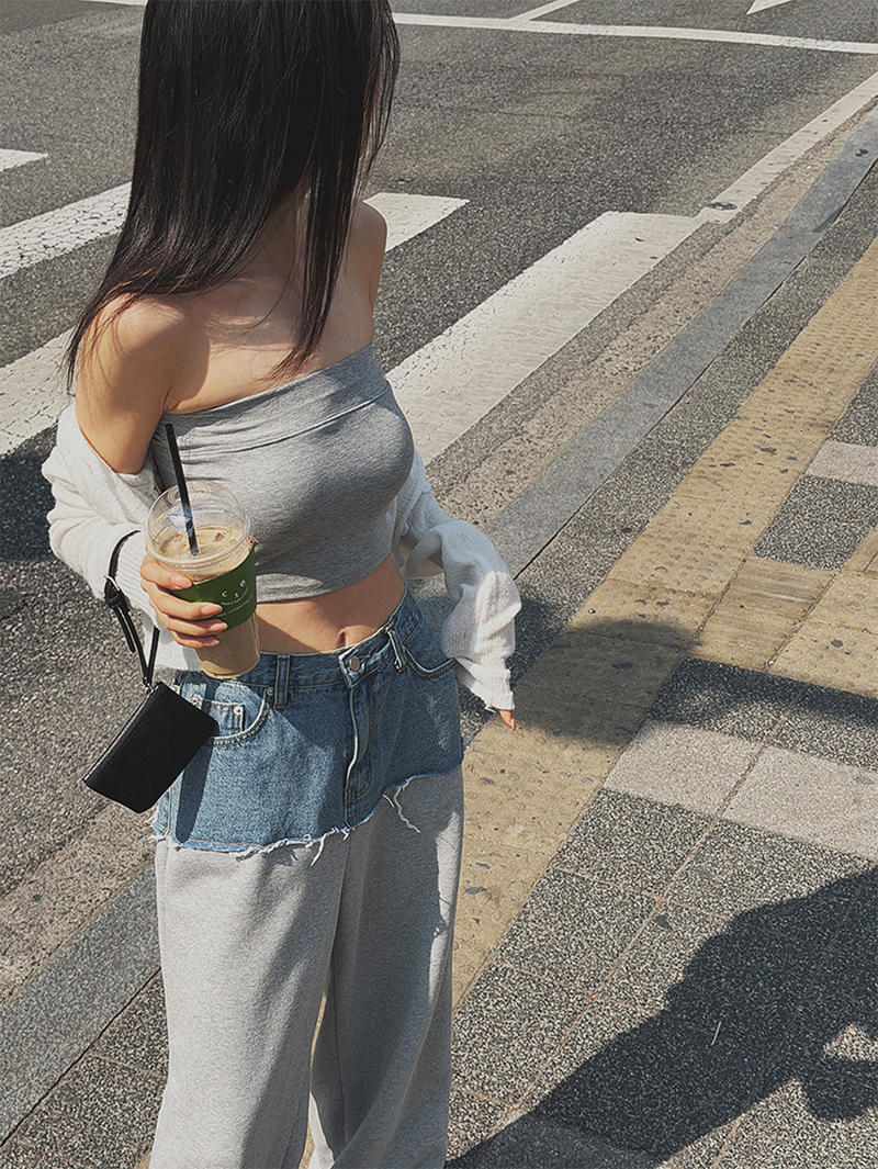 牛仔拼接假兩件設計打造層次亮點