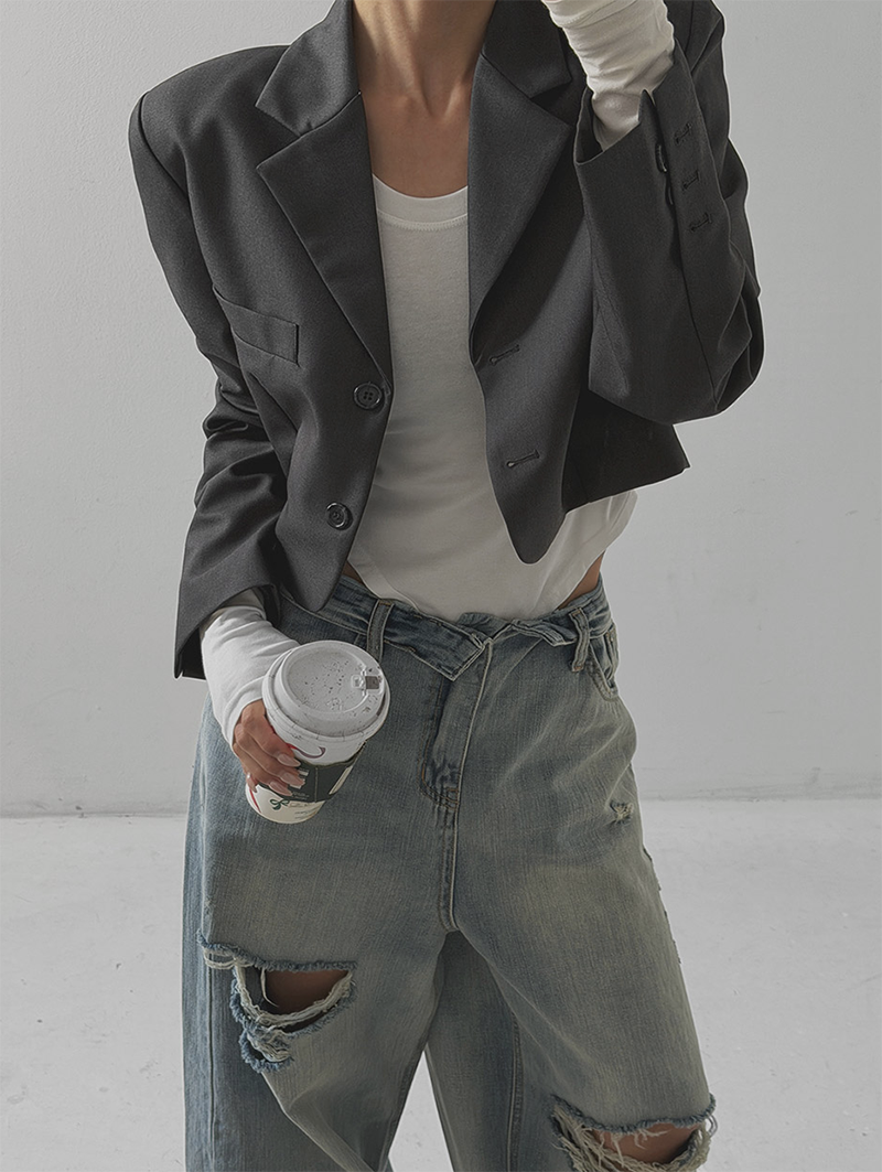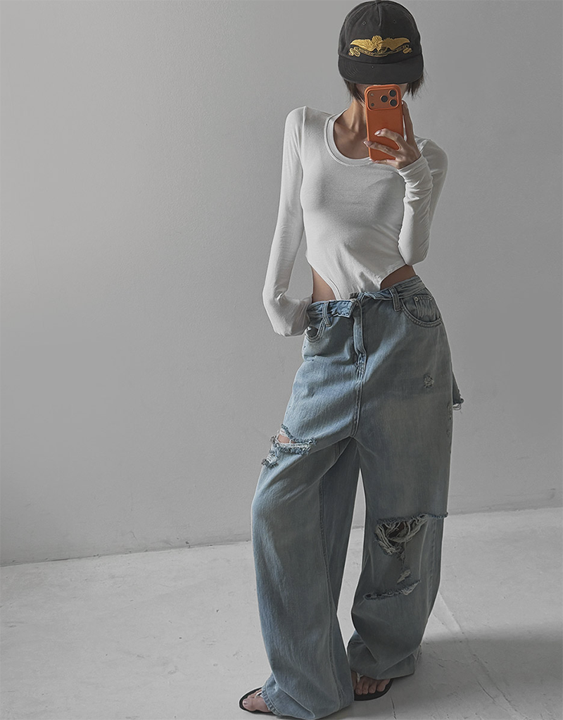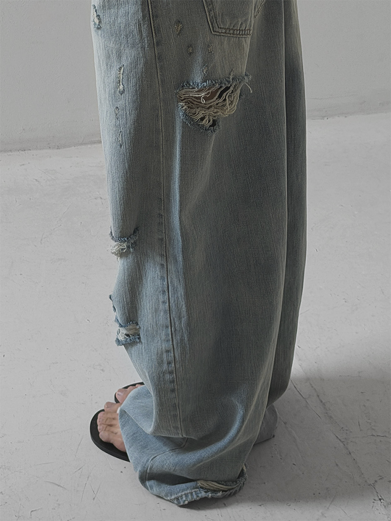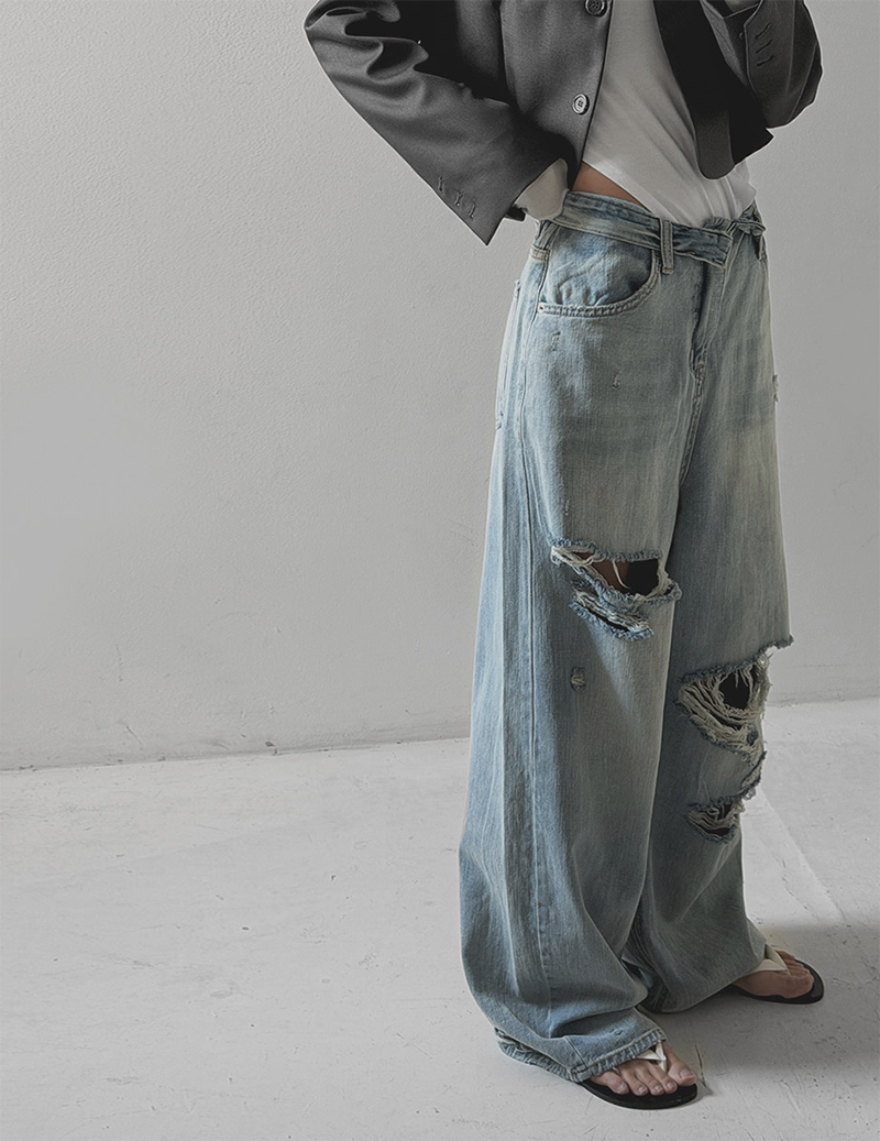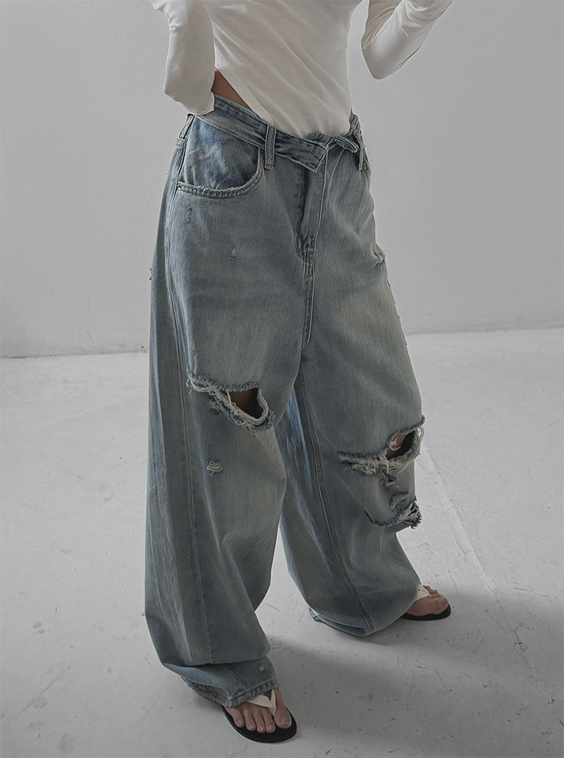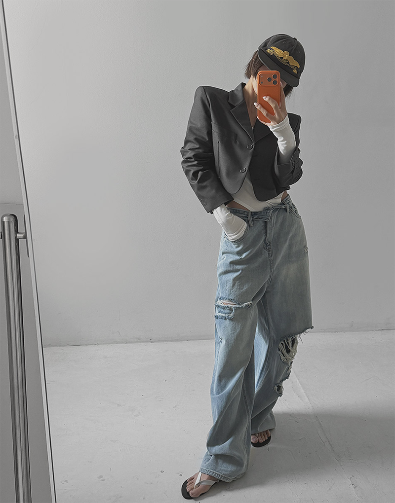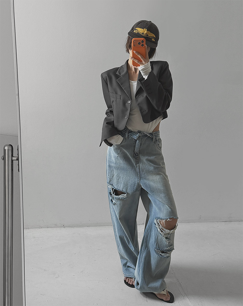 褲管隨性割破設計