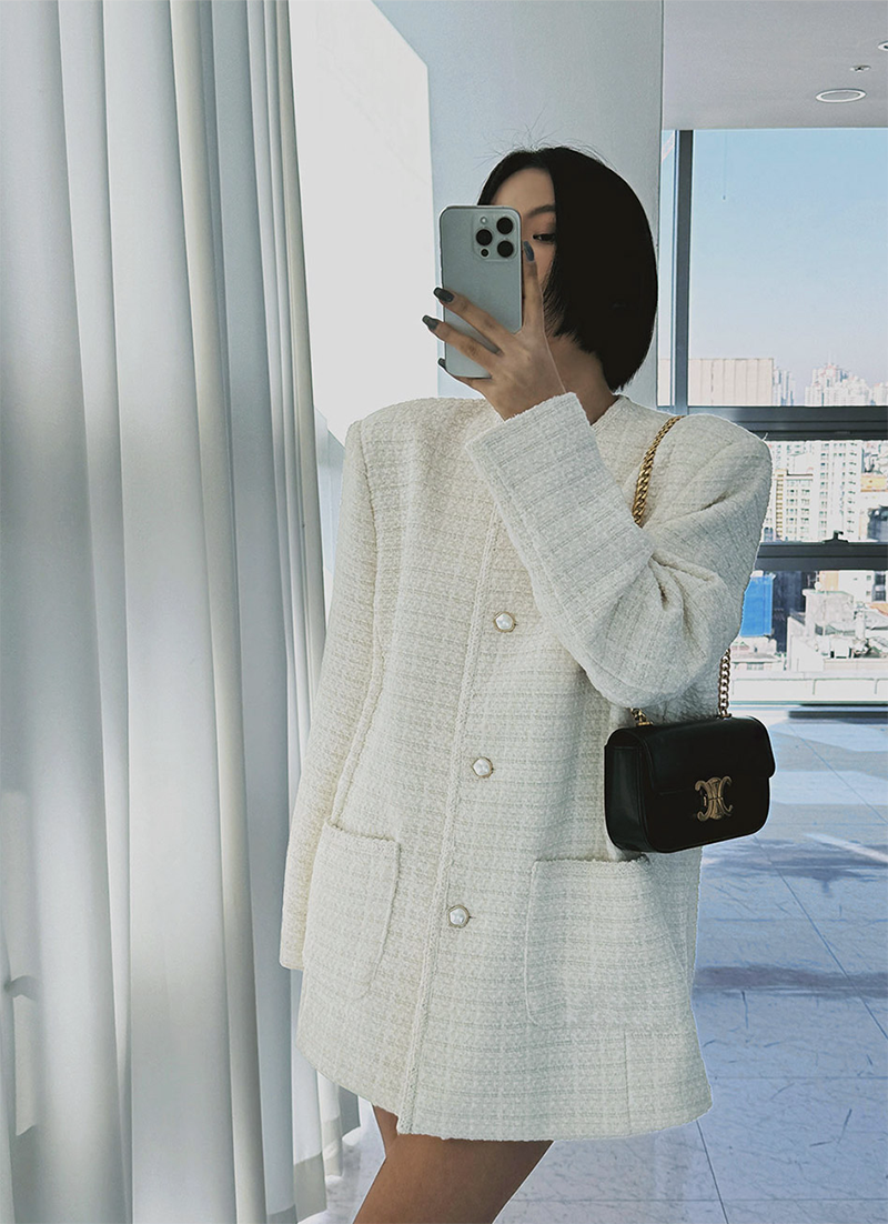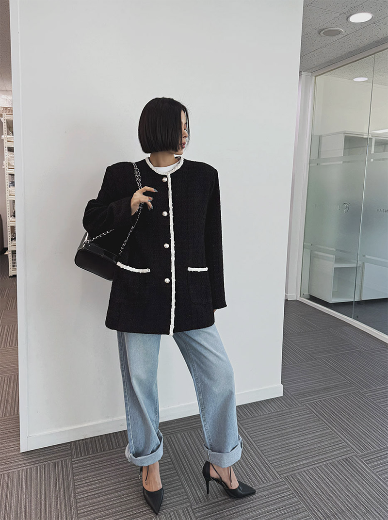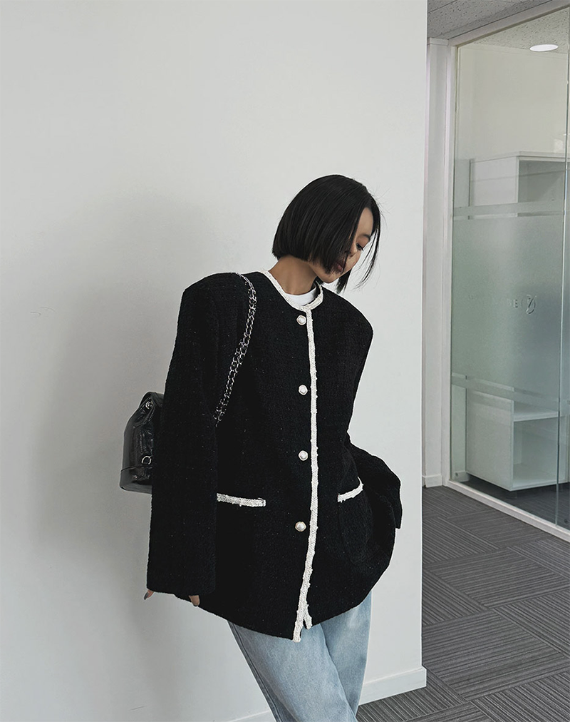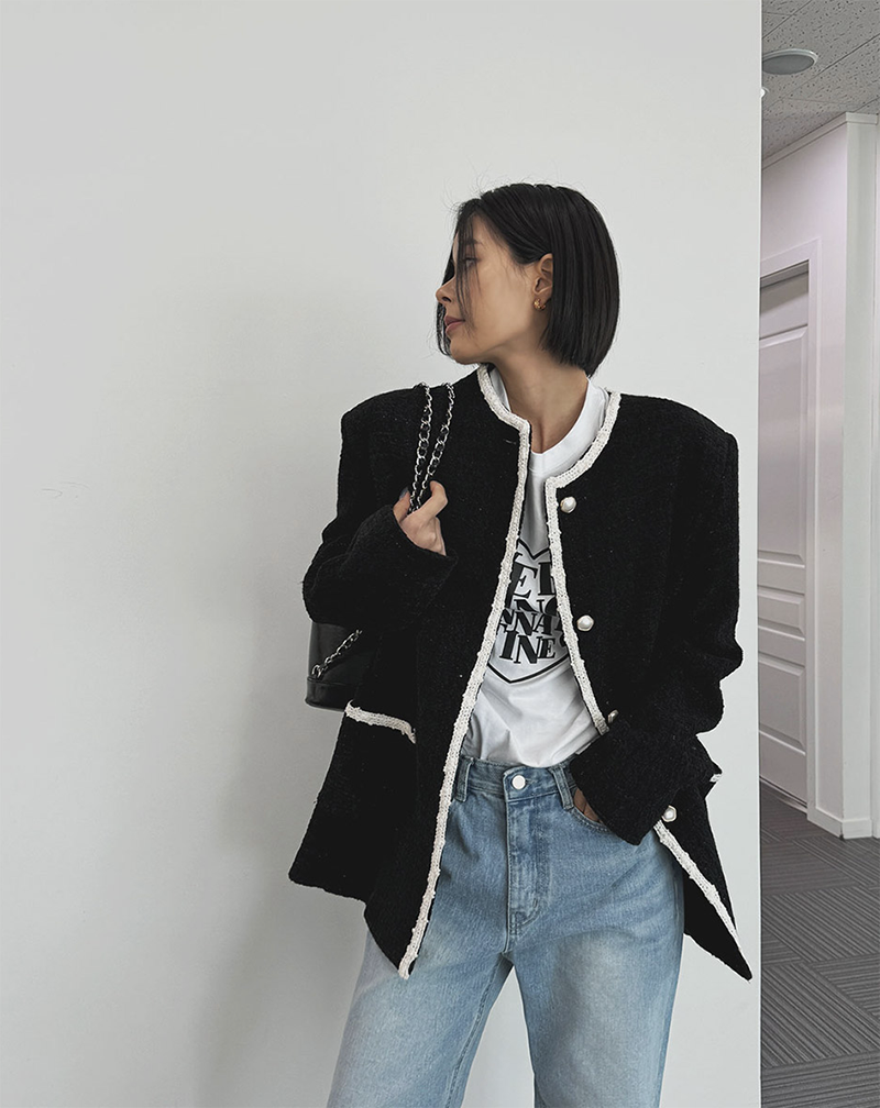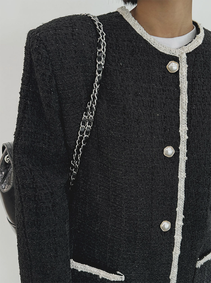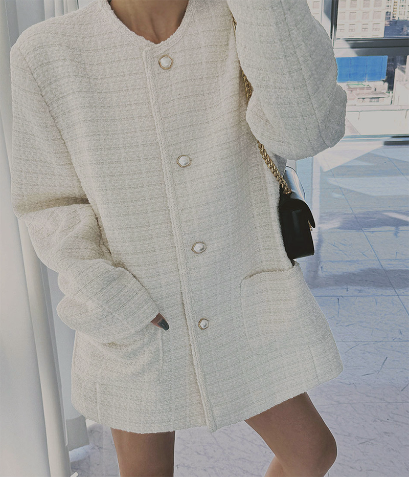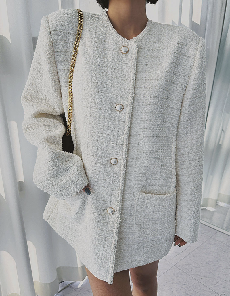 小香風毛呢元素 珍珠鈕釦點綴高級感