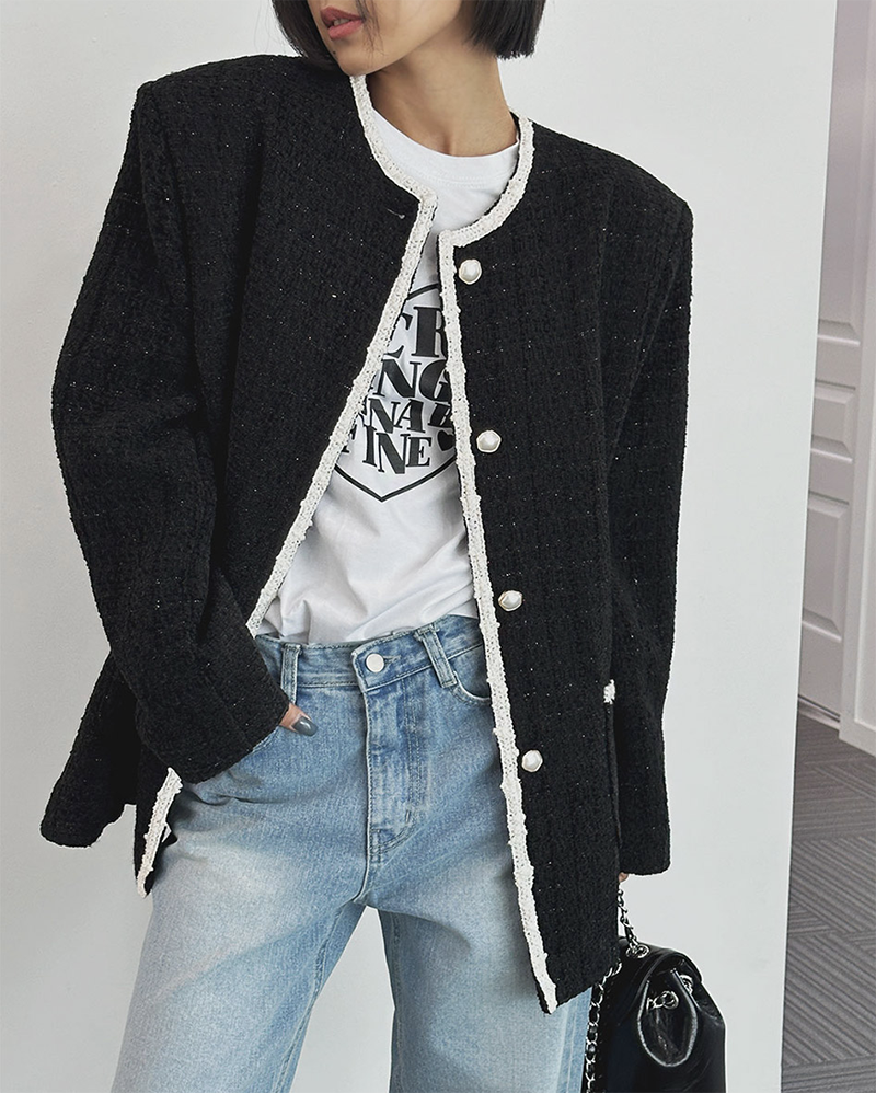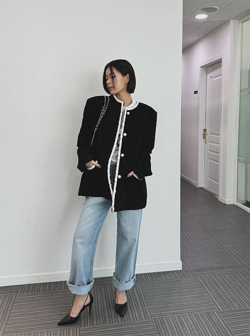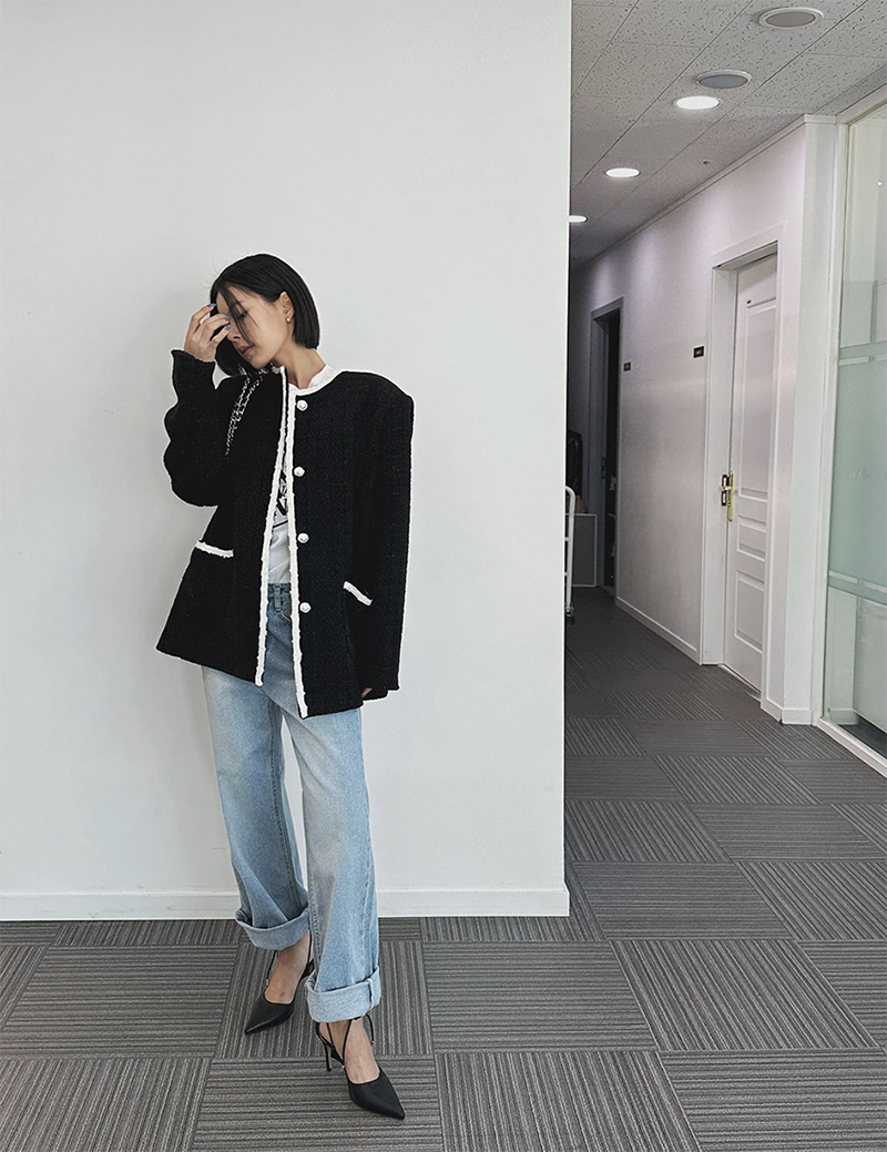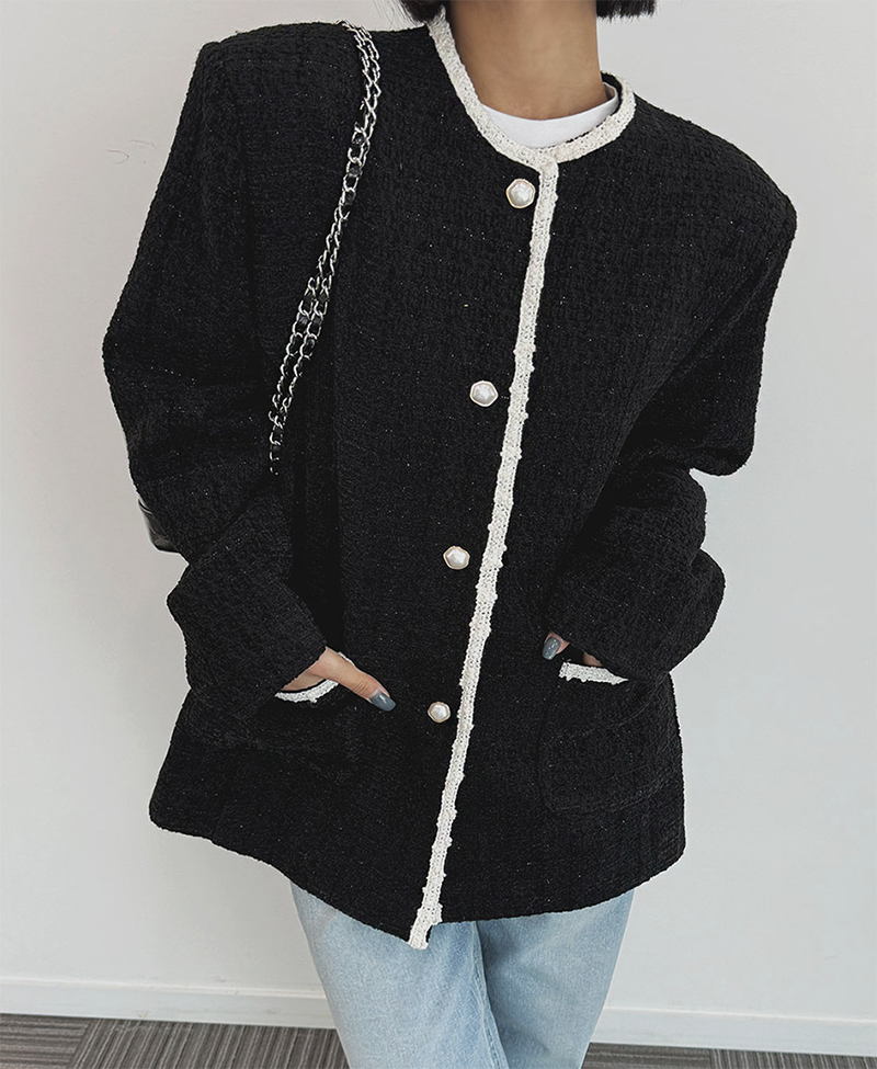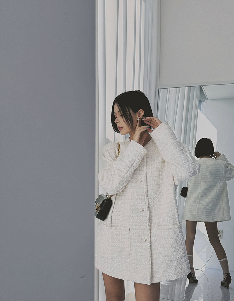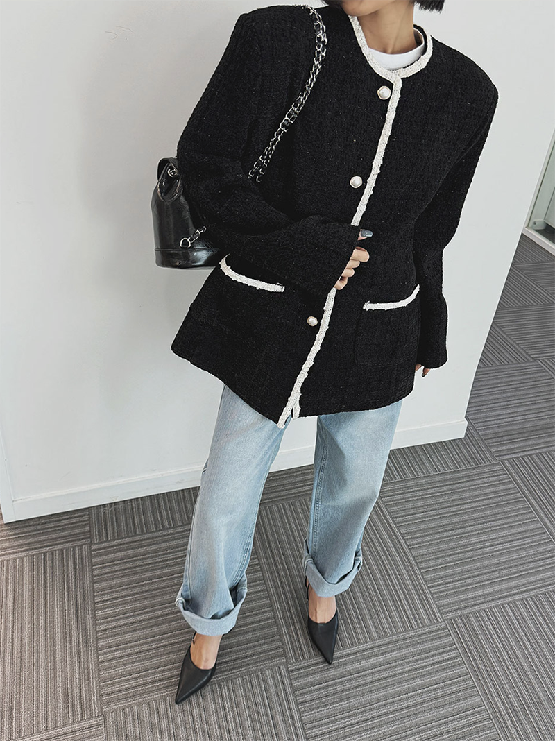 小香風毛呢元素 珍珠鈕釦點綴高級感