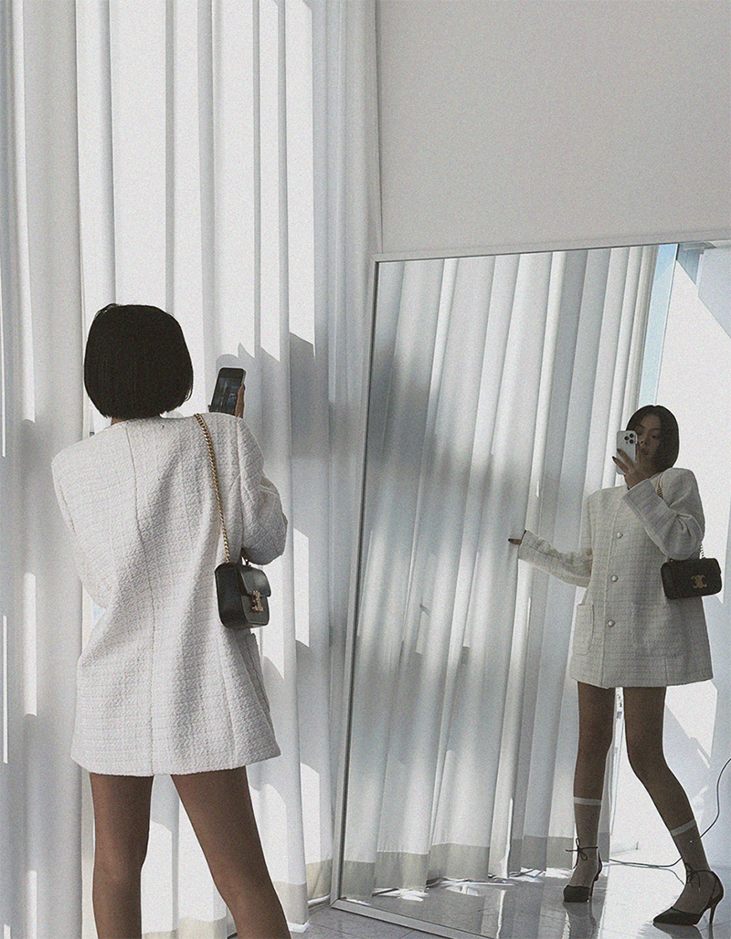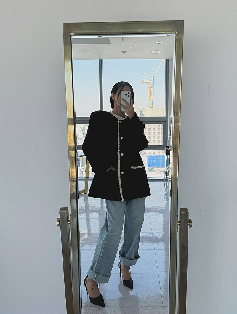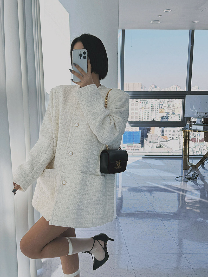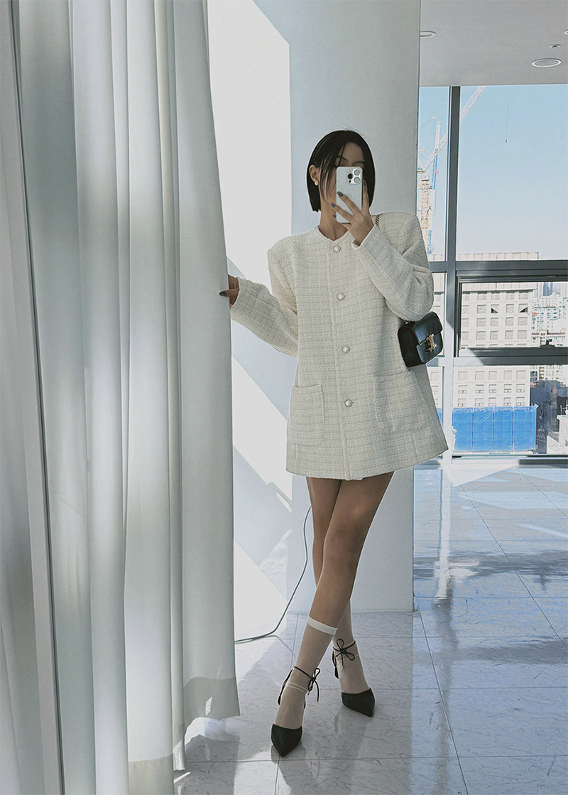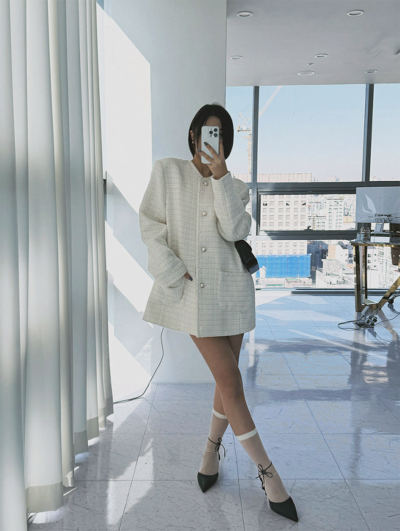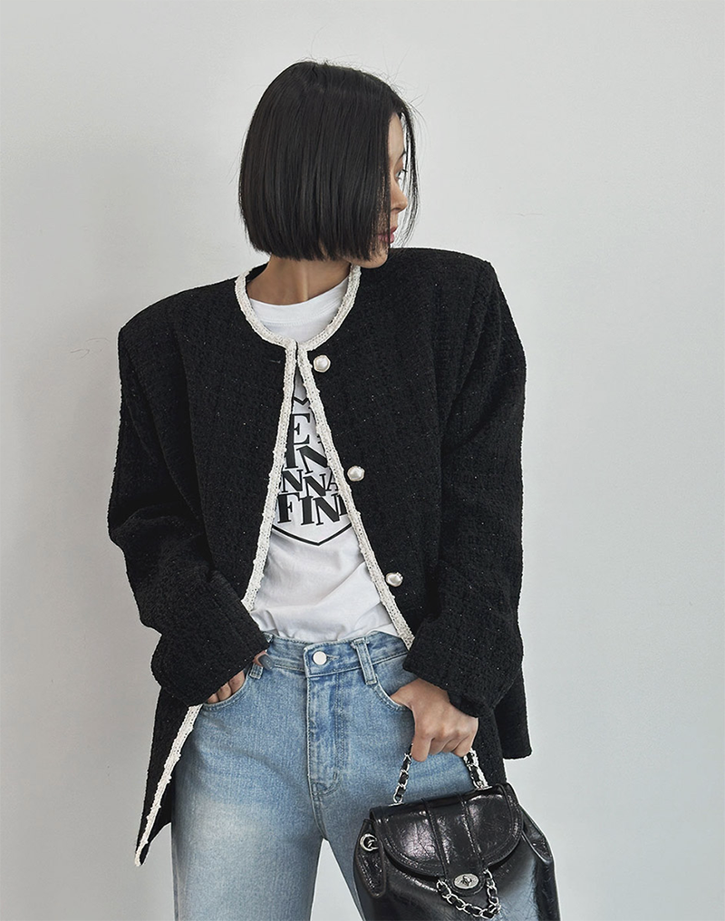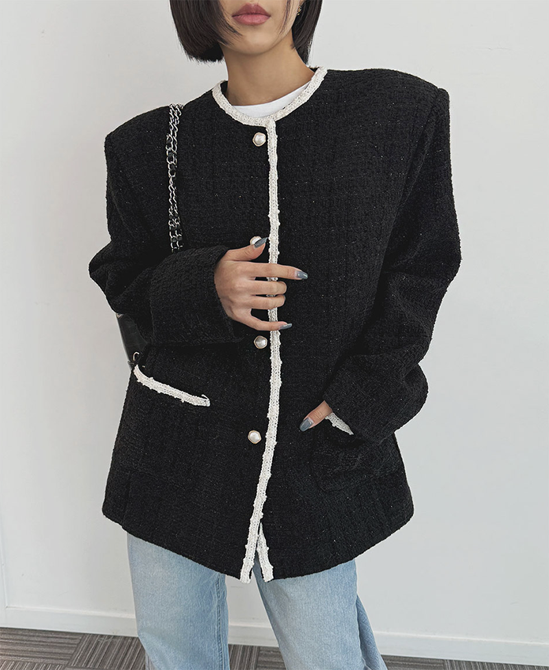 小香風毛呢元素 珍珠鈕釦點綴高級感
