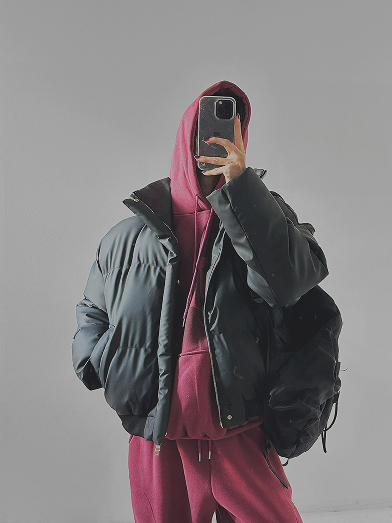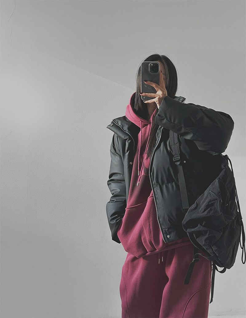 高領設計與雙向拉鍊提供多種穿法