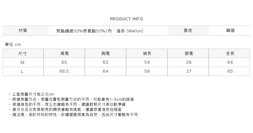 內含輕量且高效保暖的 Wellon(웰론