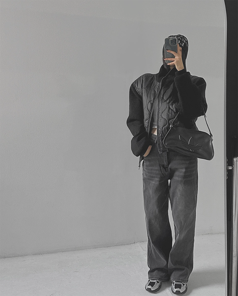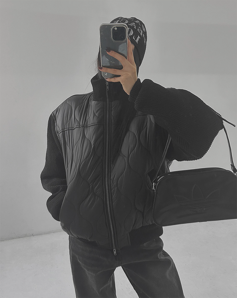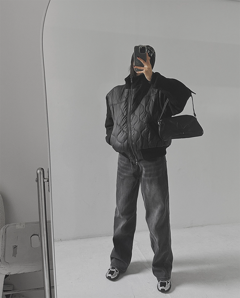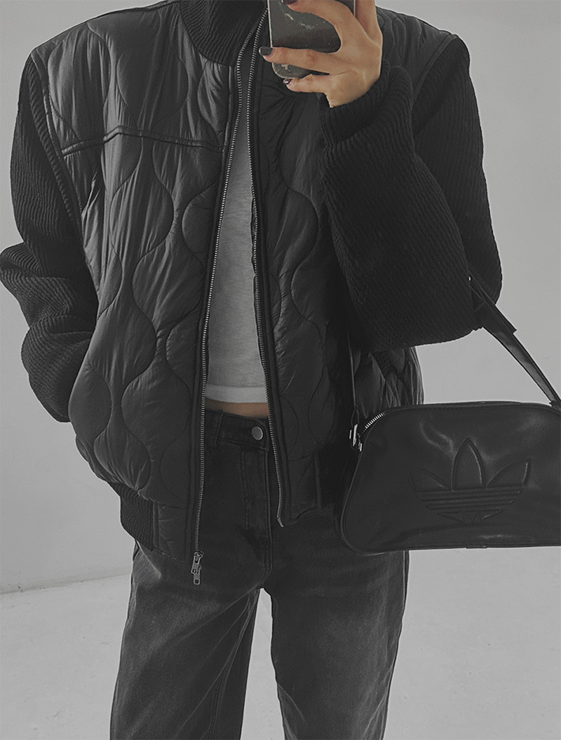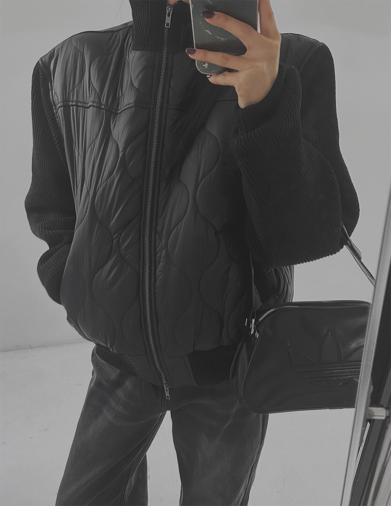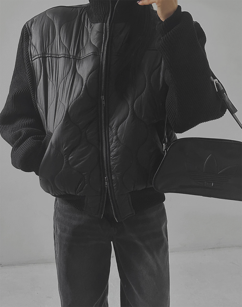 結合溫暖的鋪棉內裡與質感針織拼接