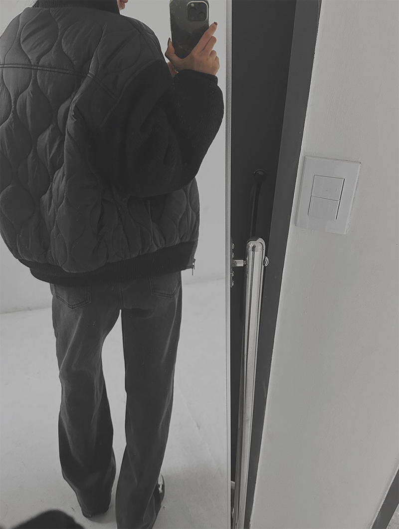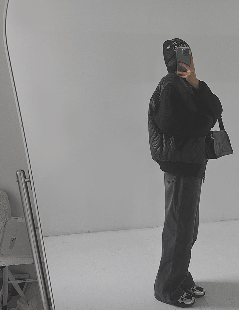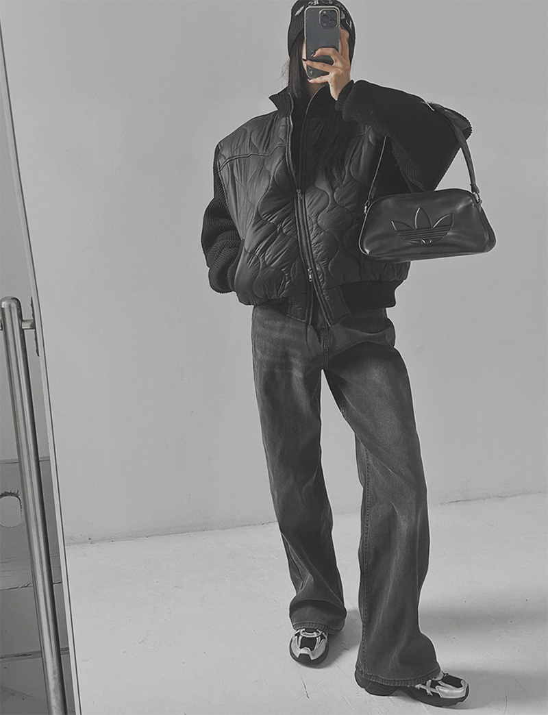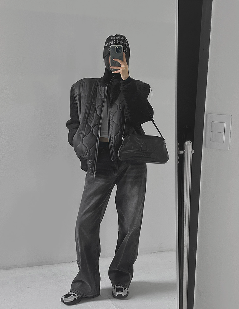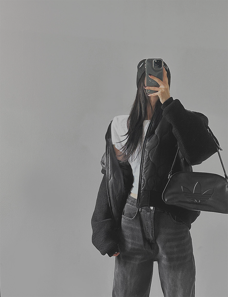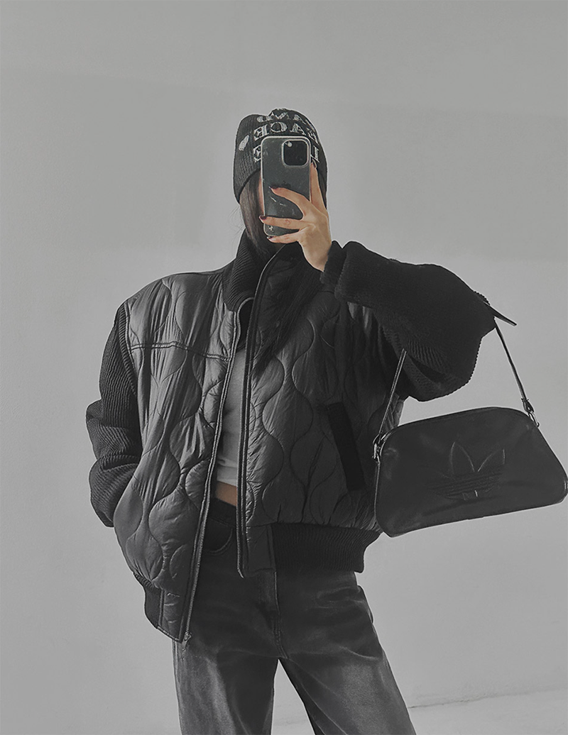 結合溫暖的鋪棉內裡與質感針織拼接