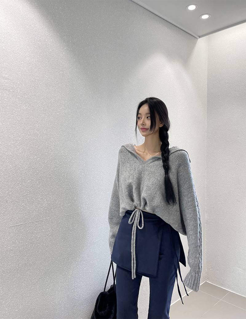 V字開襟領搭配領片設計