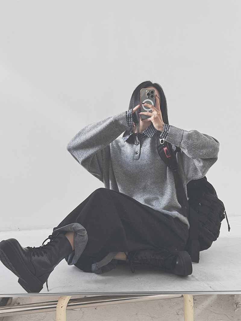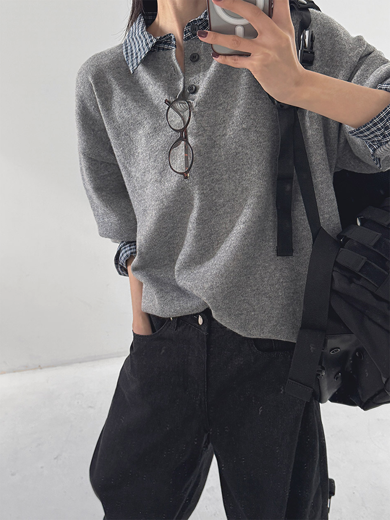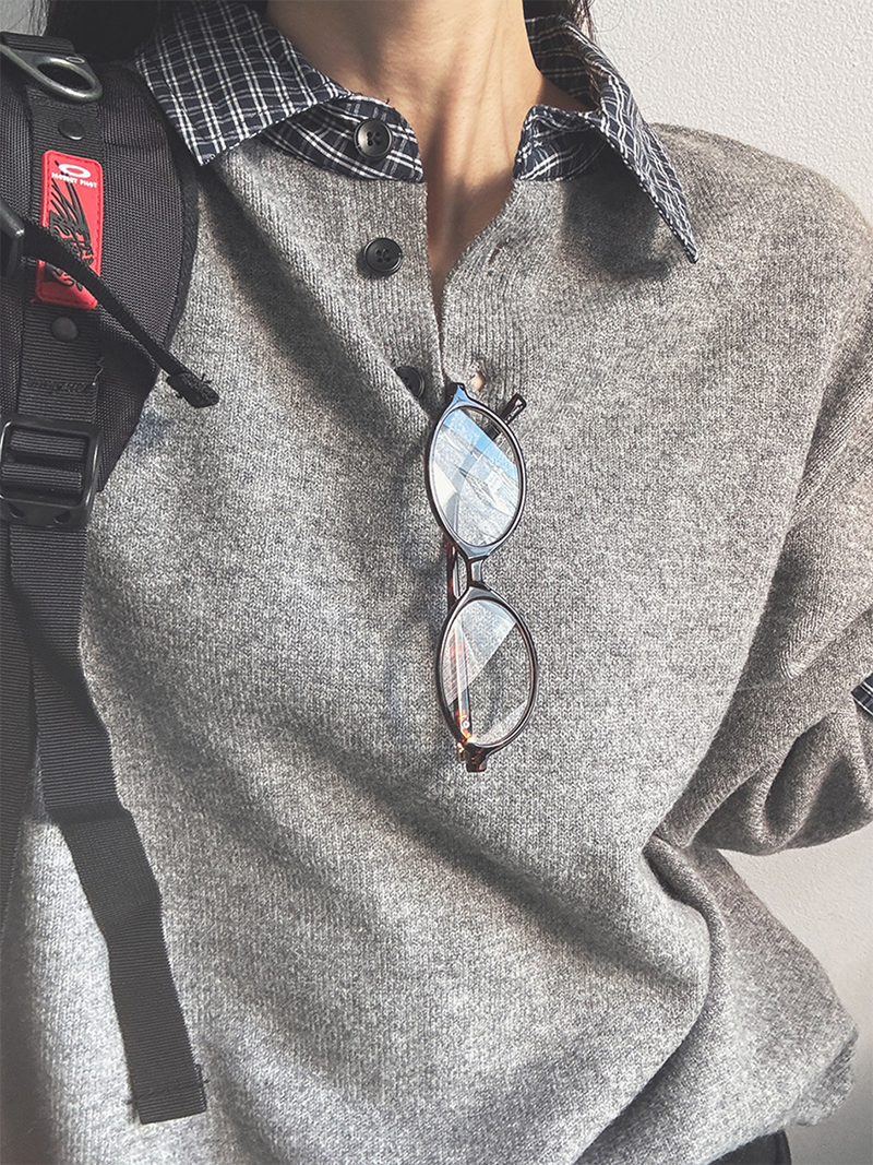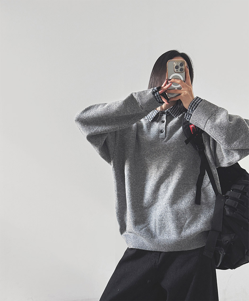 格紋襯衫領層次設計