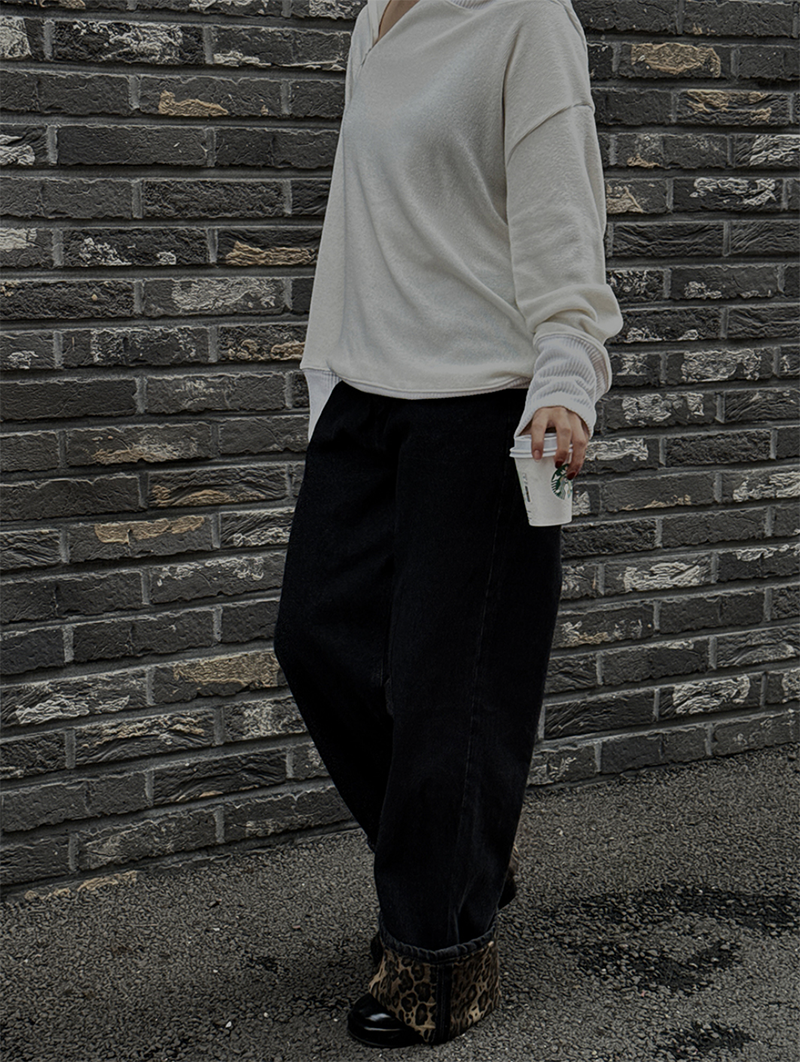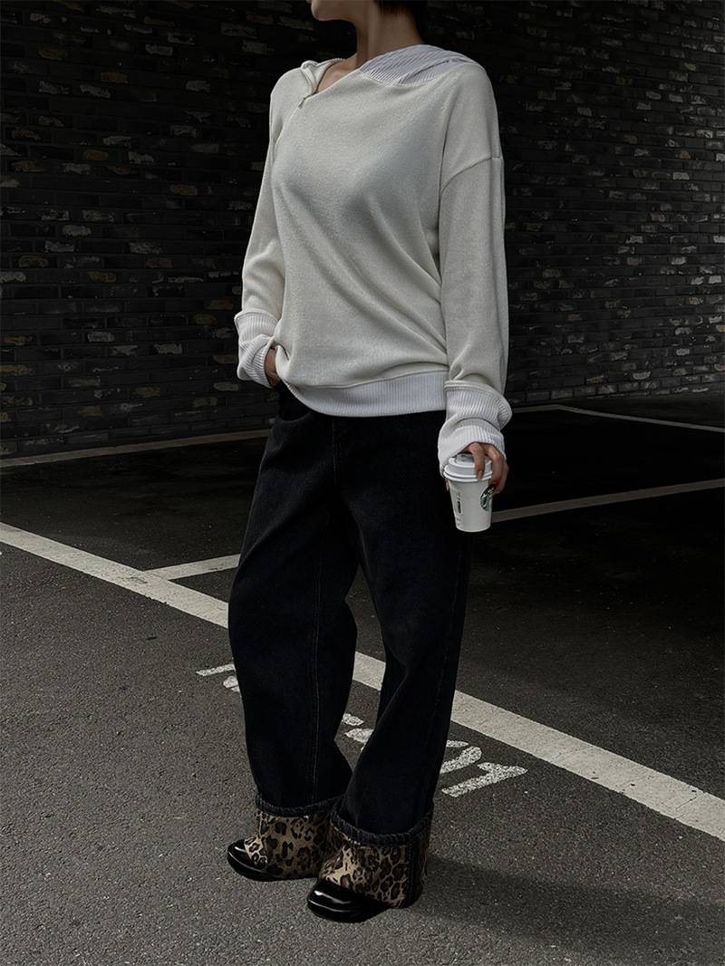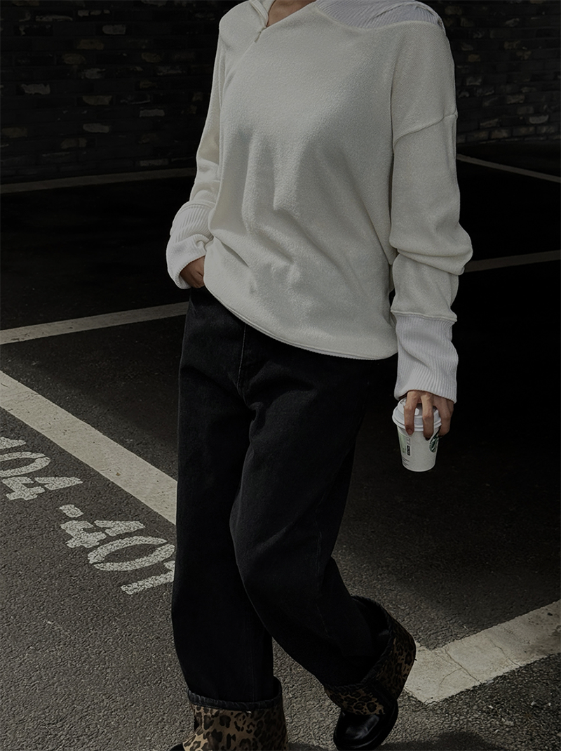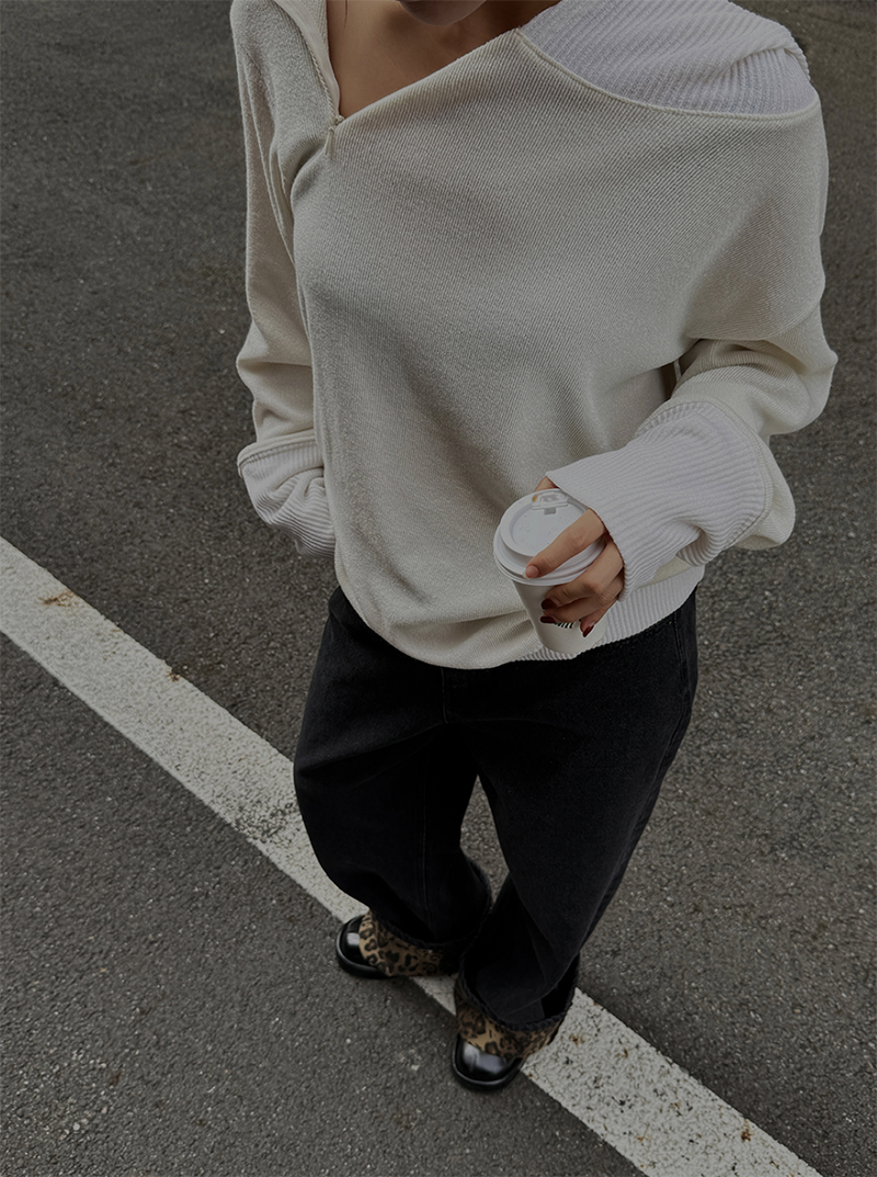 寬鬆版型搭配羅紋車邊