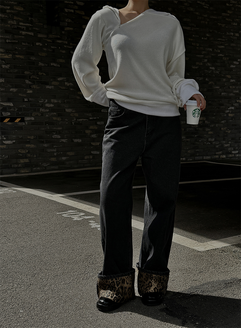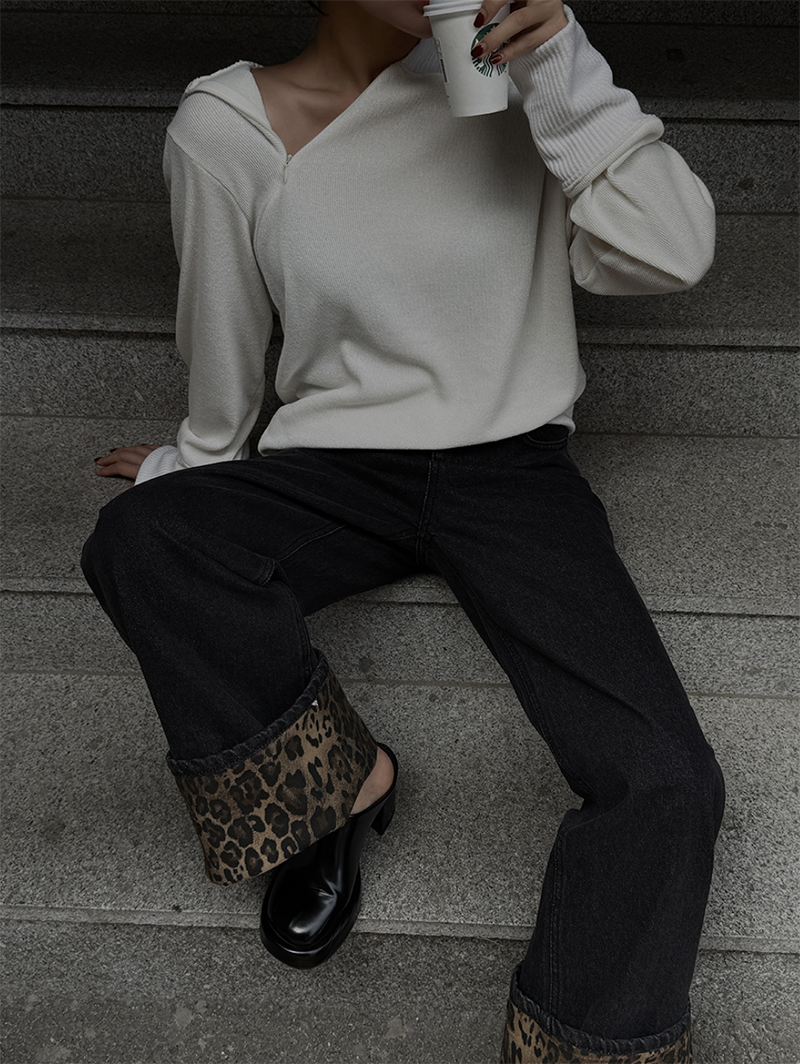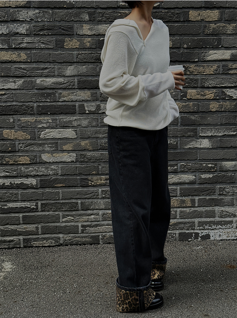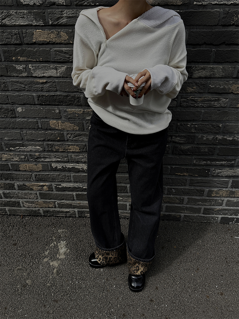 寬鬆版型搭配羅紋車邊