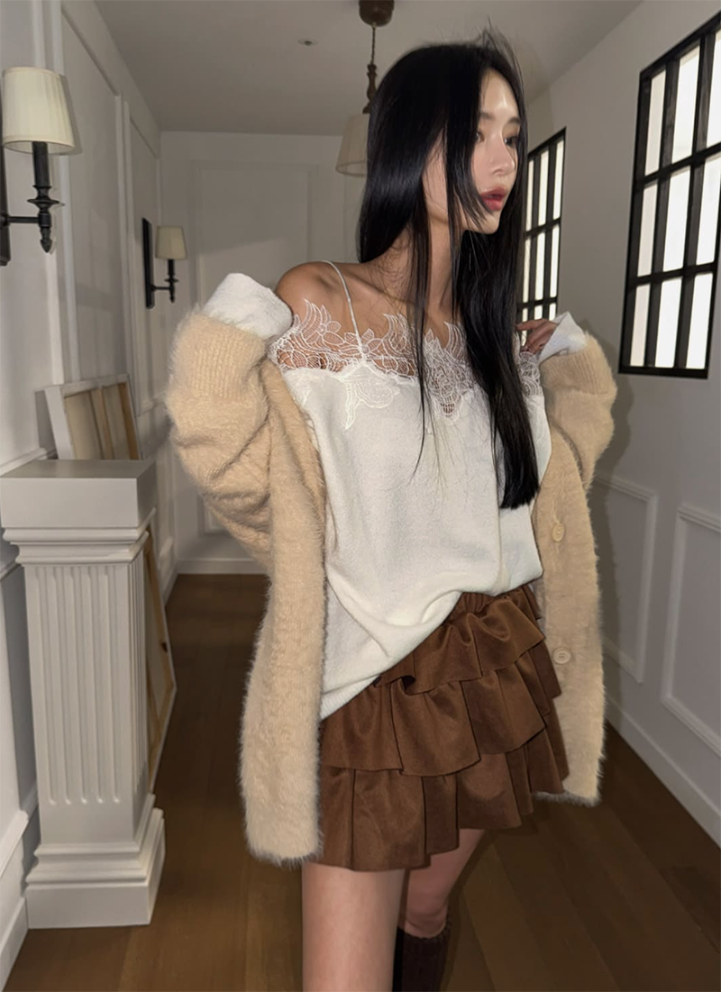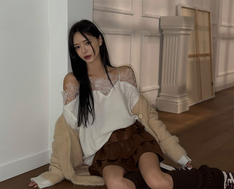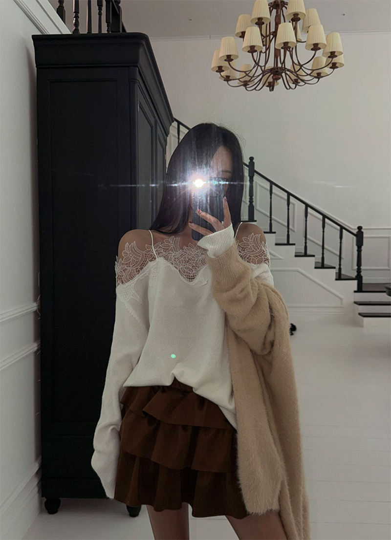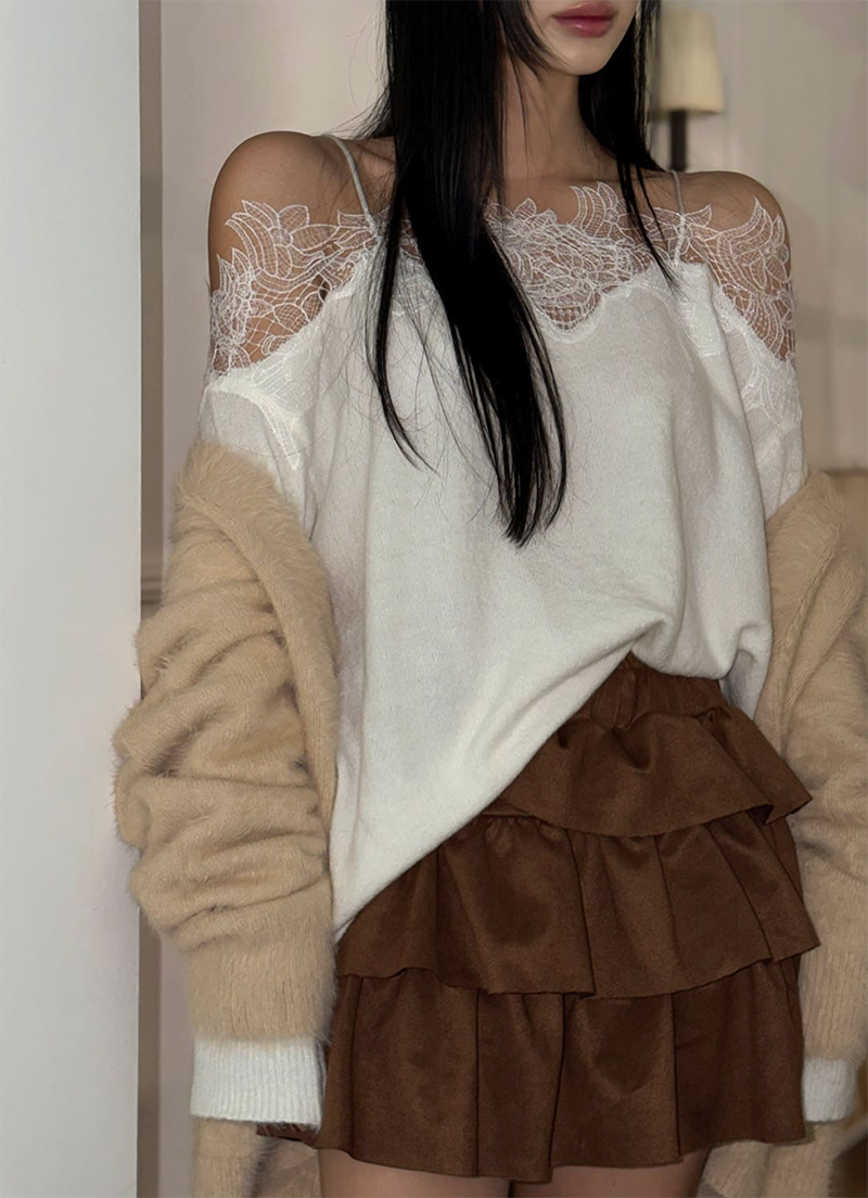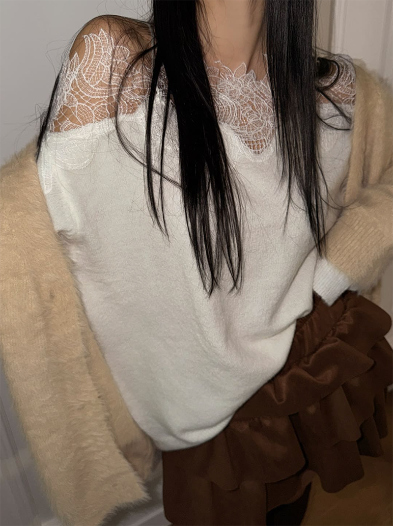 蕾絲拼接領口為整體增添浪漫細節