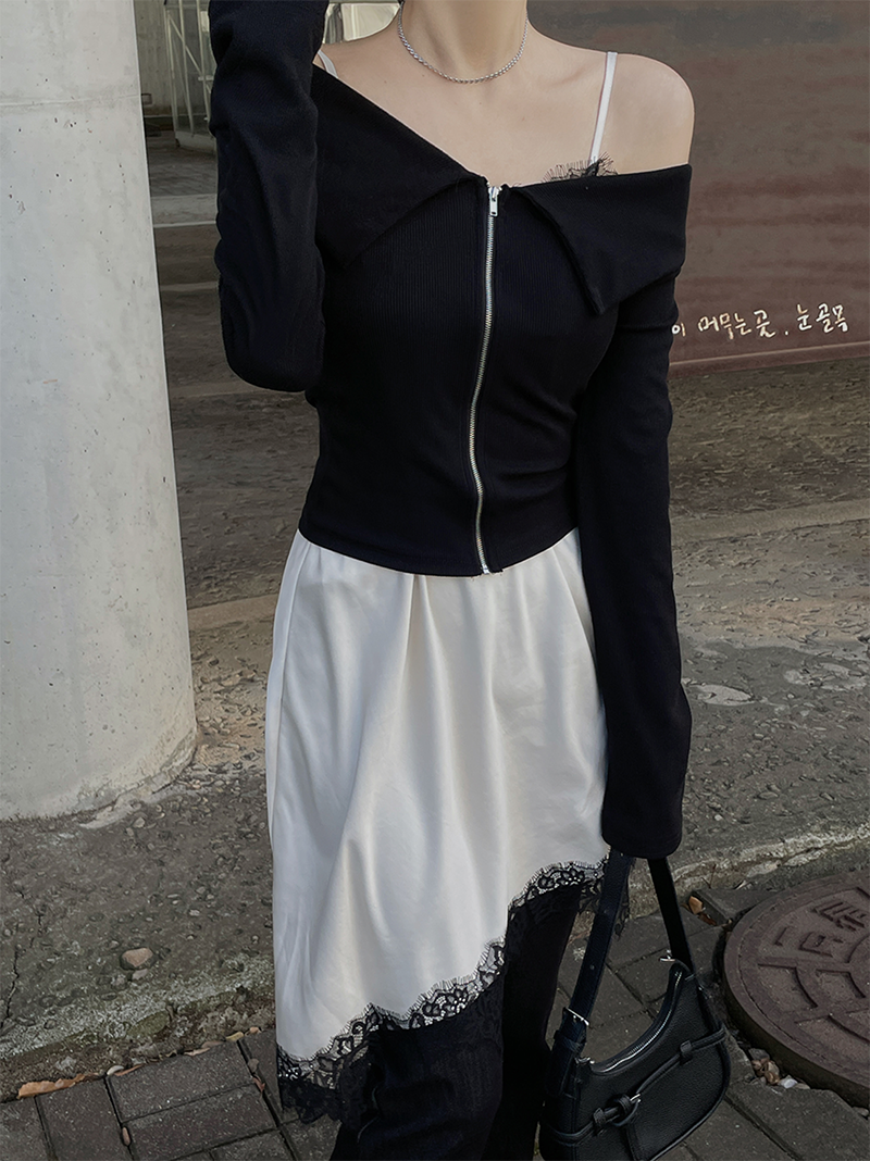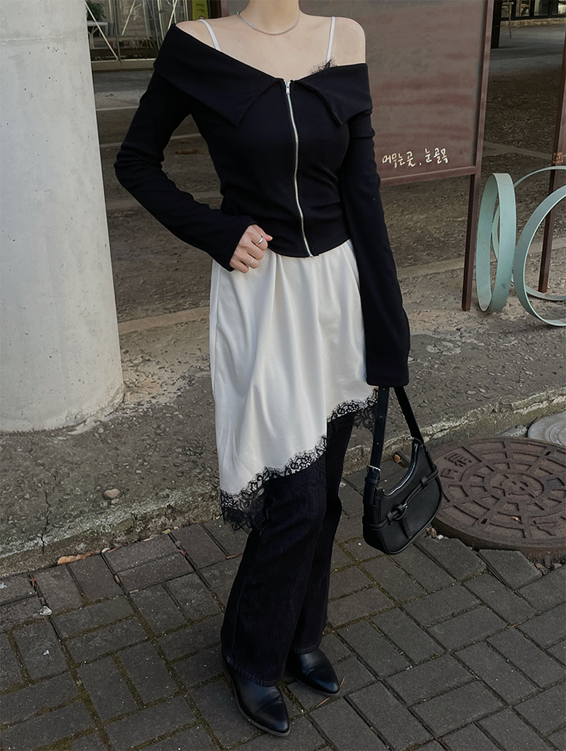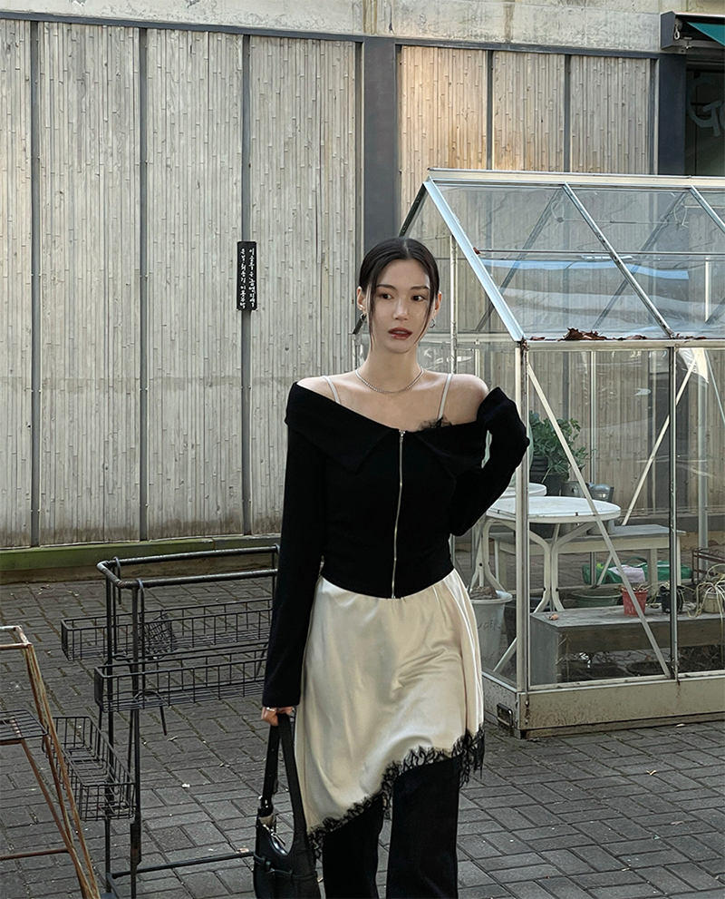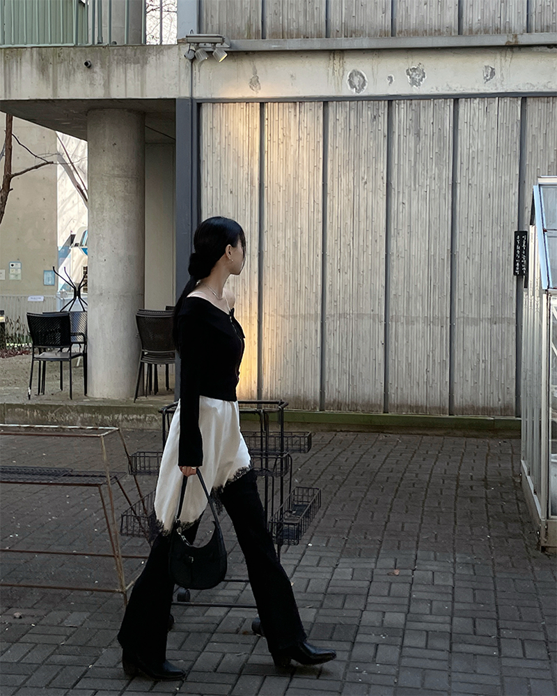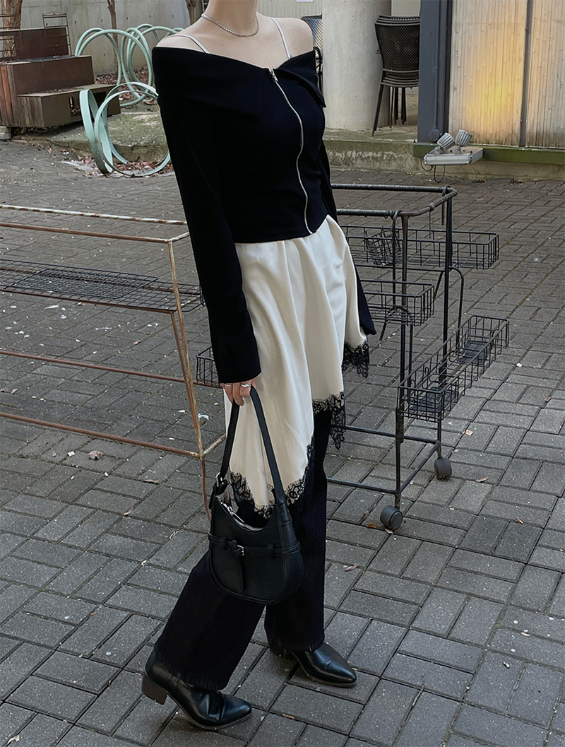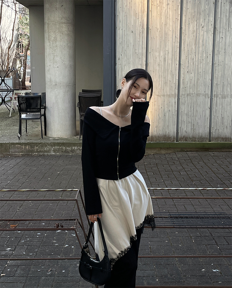 翻摺露肩設計自然勾勒鎖骨與肩線比例