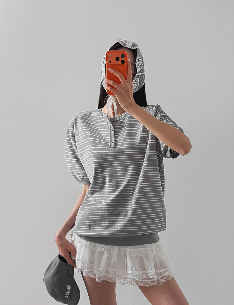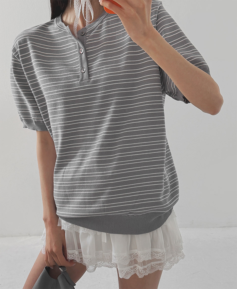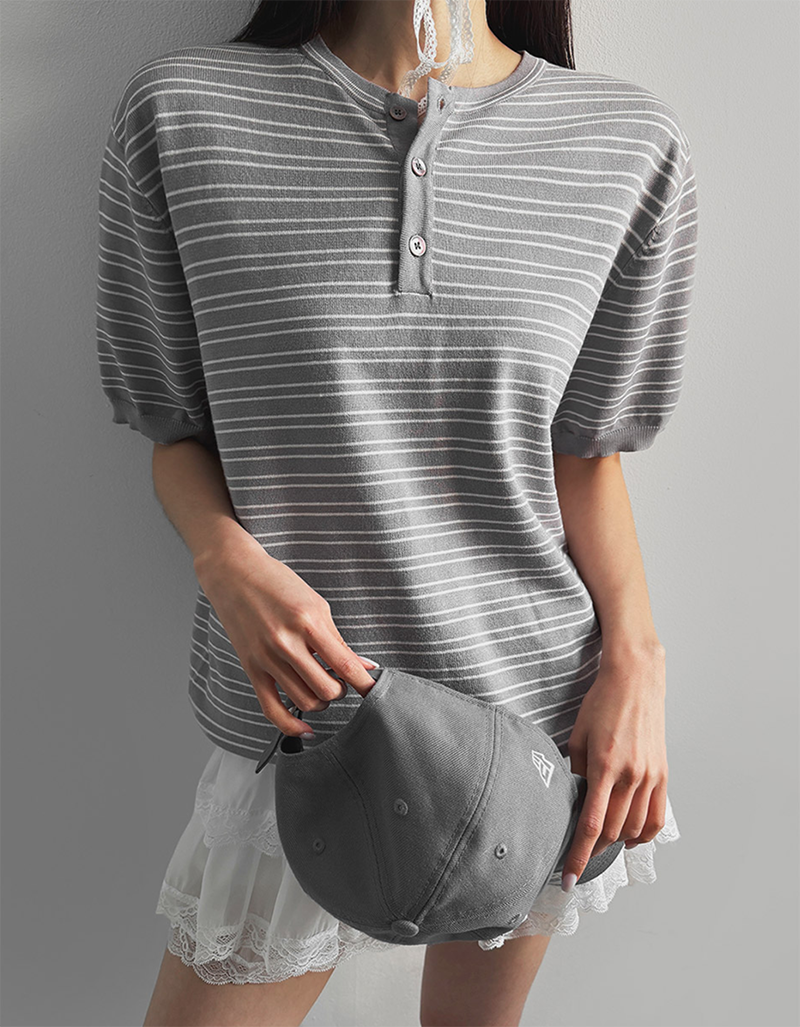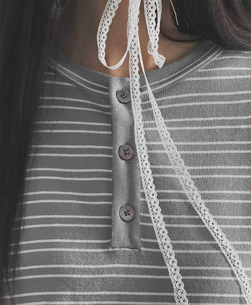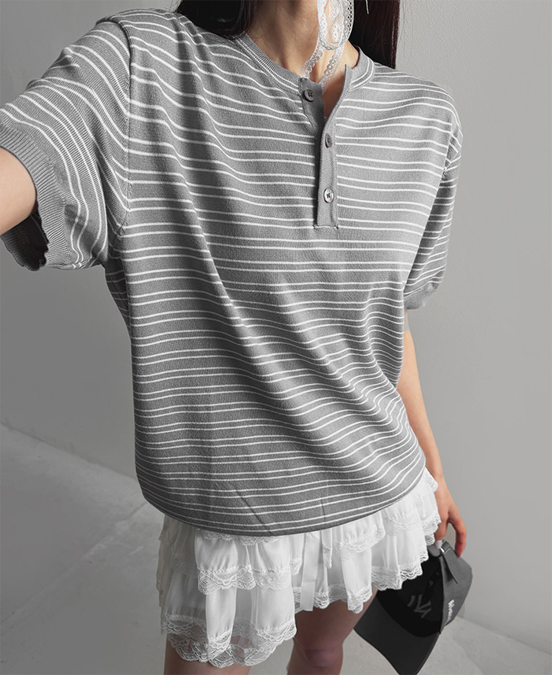 經典條紋結合亨利領設計