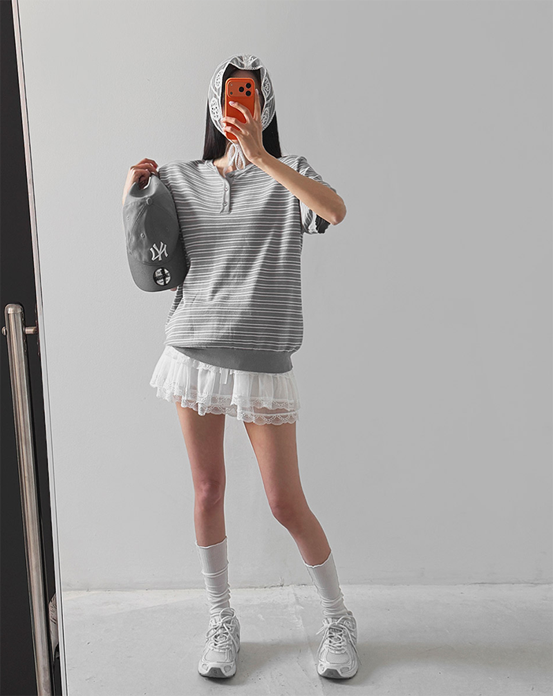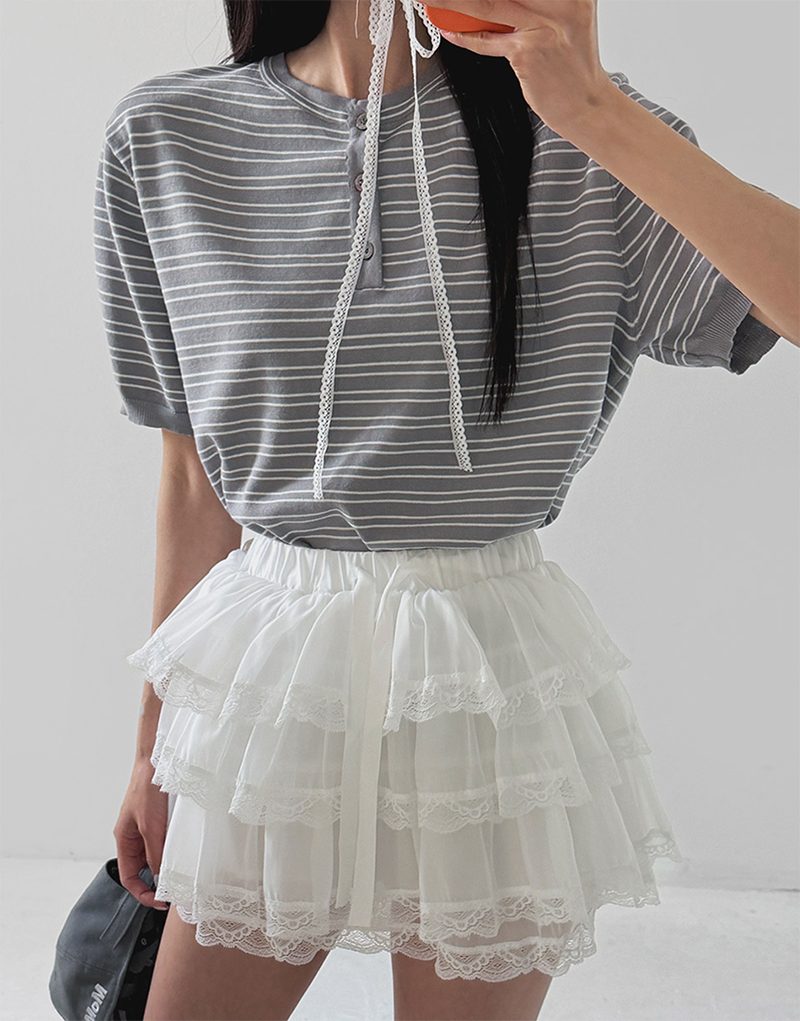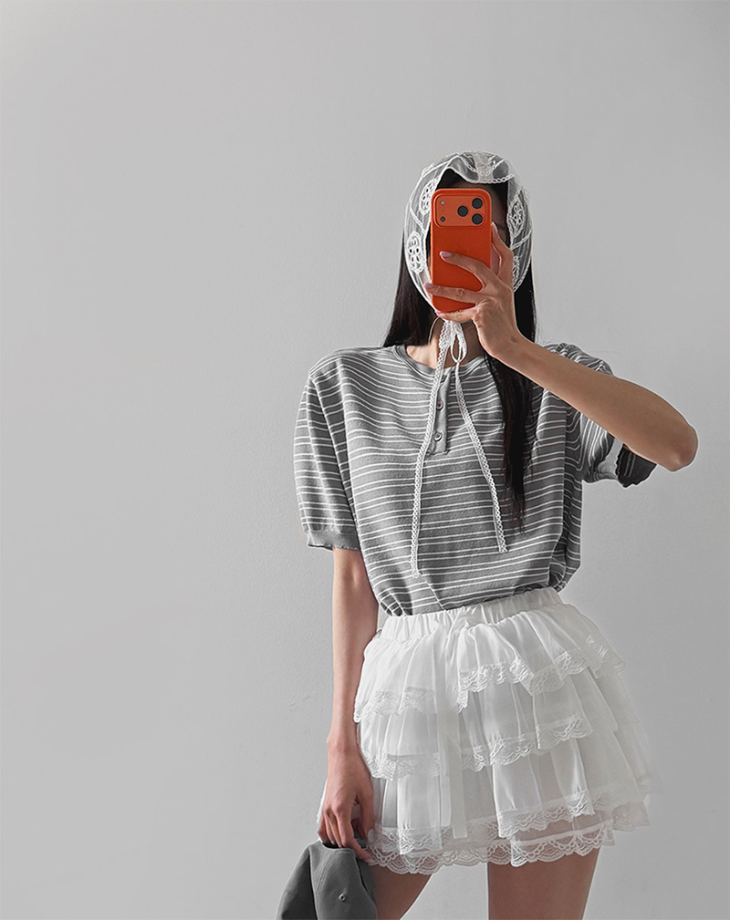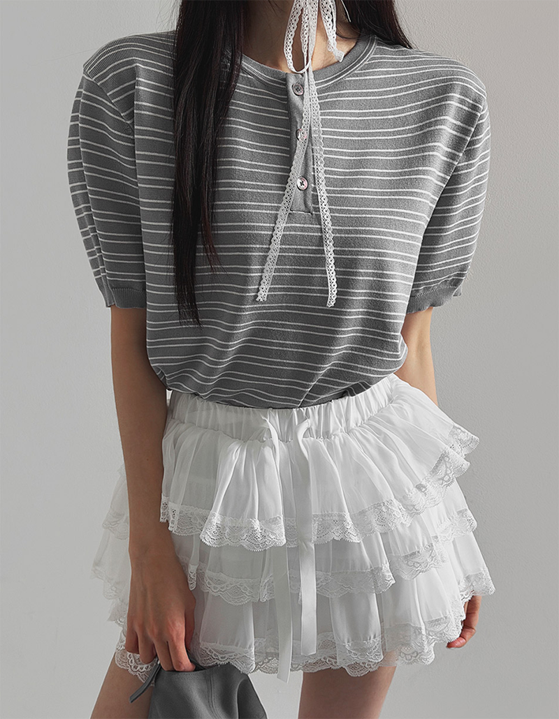 經典條紋結合亨利領設計