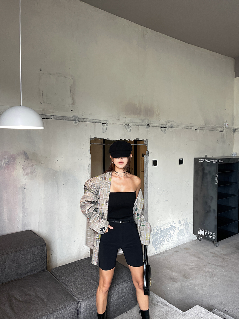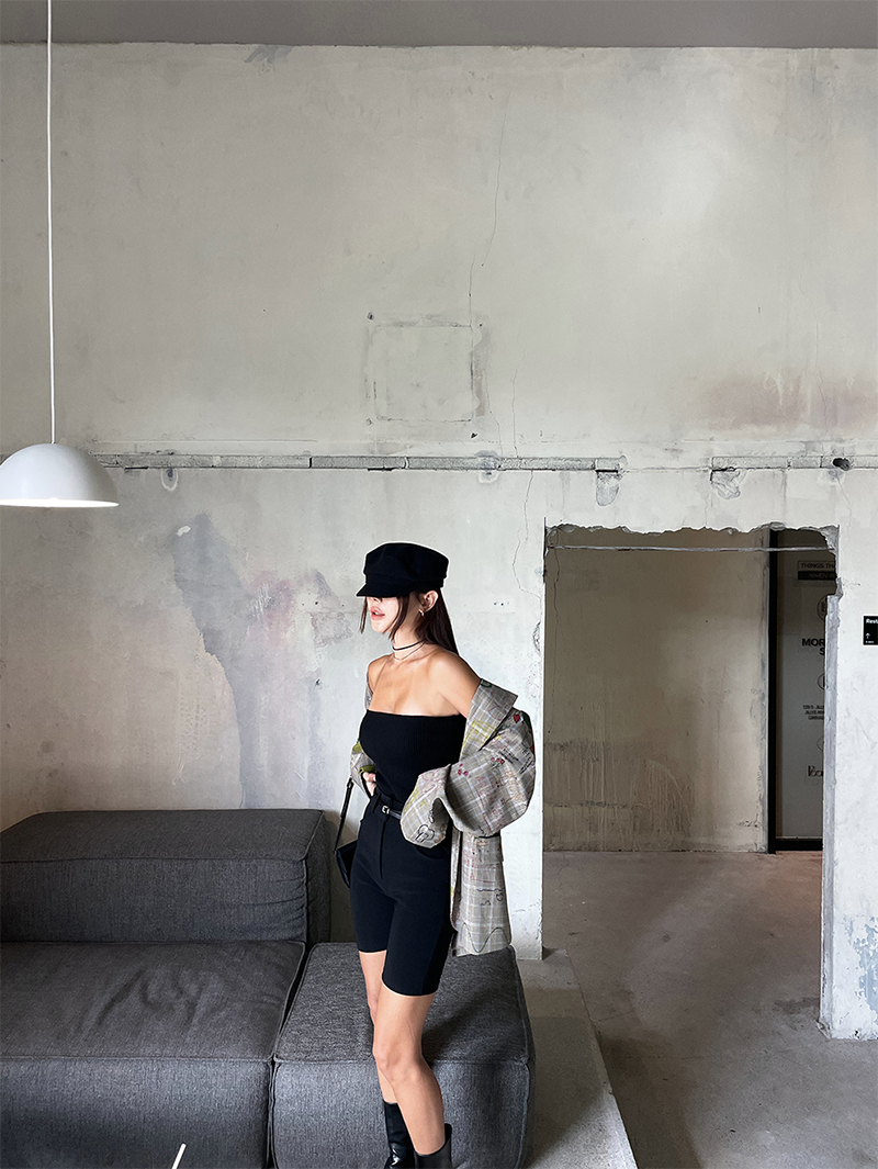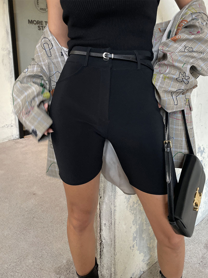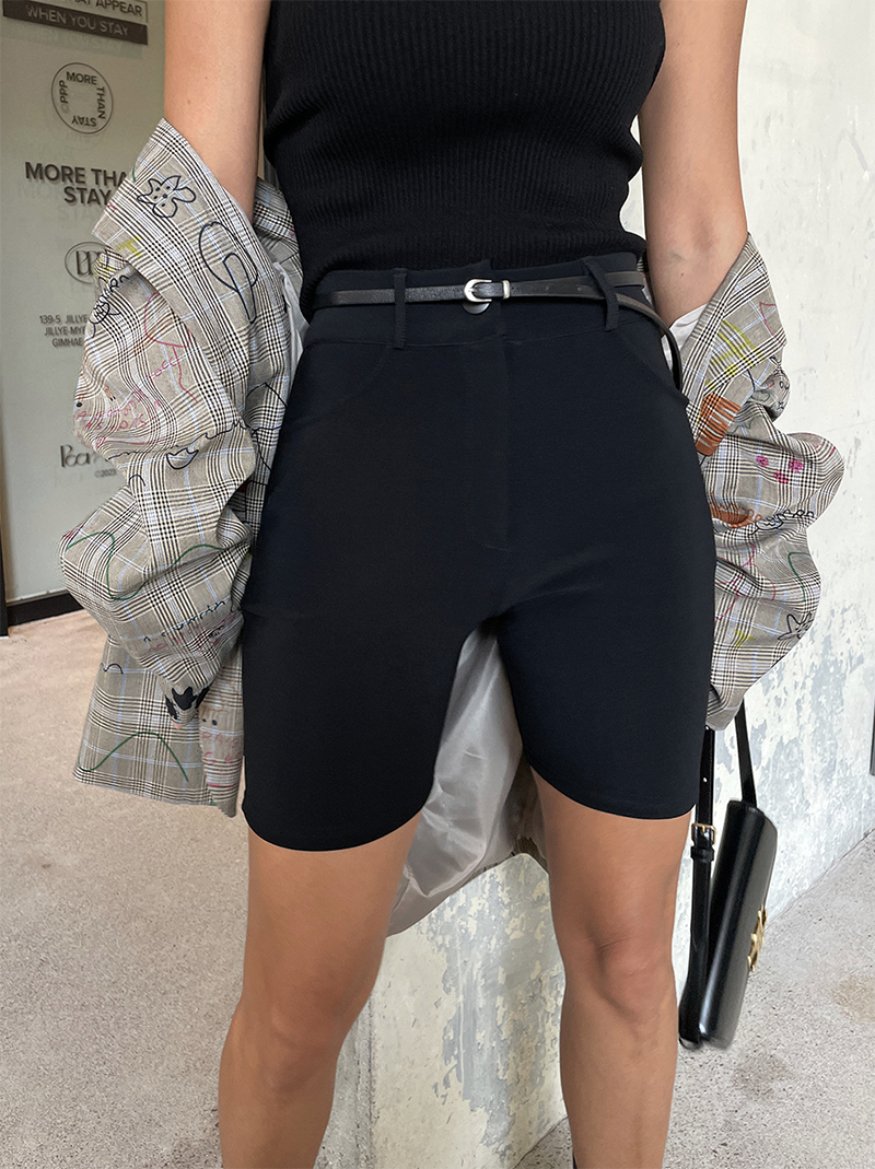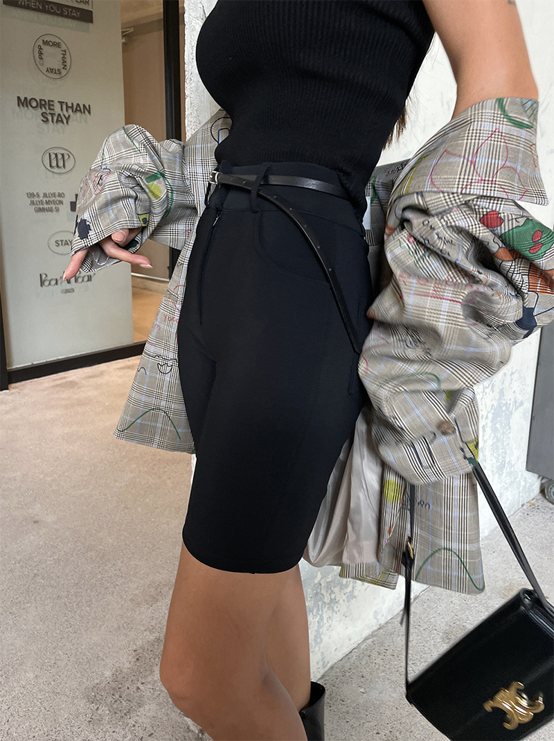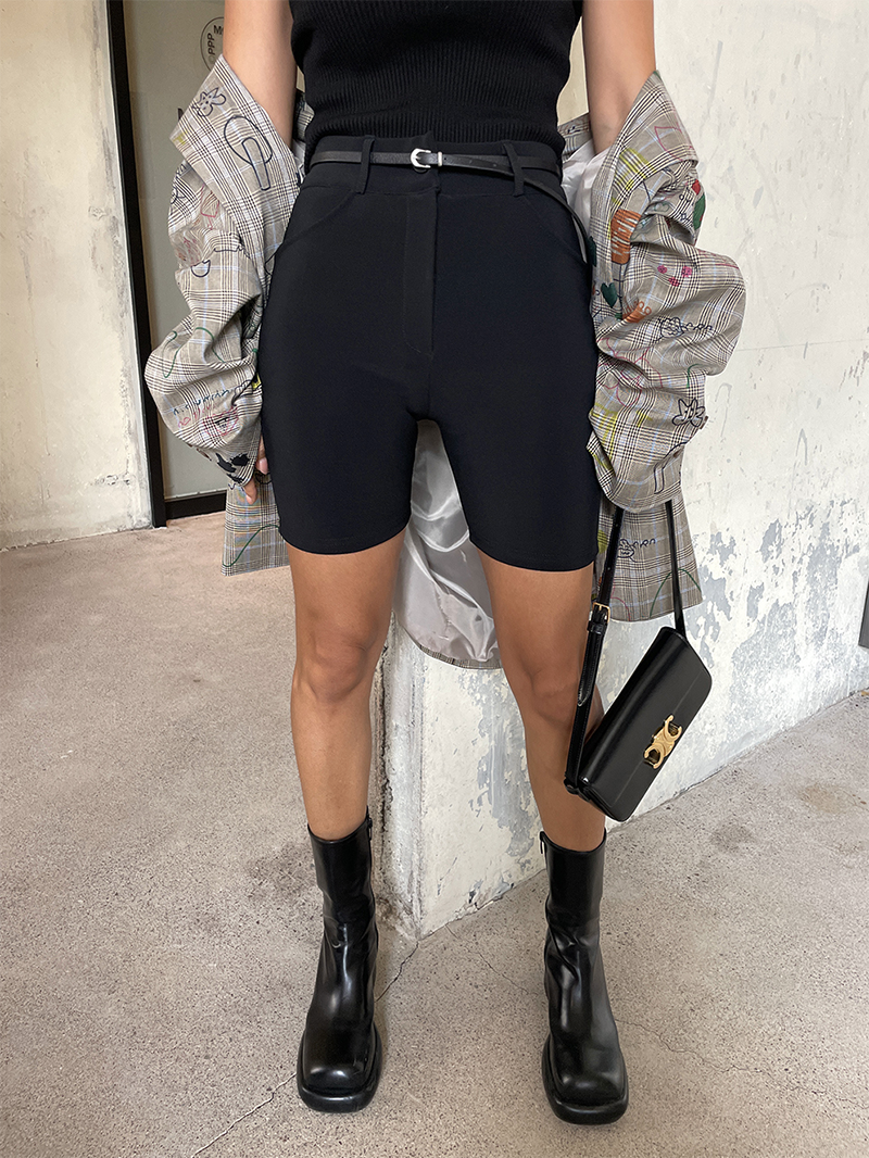 合身貼腿褲型 膝上四分剪裁