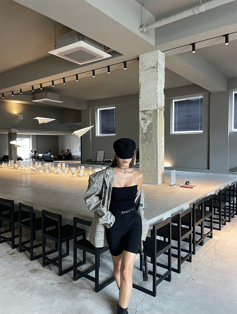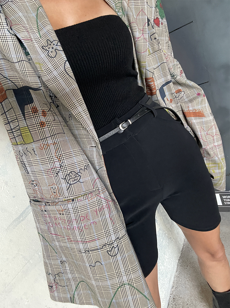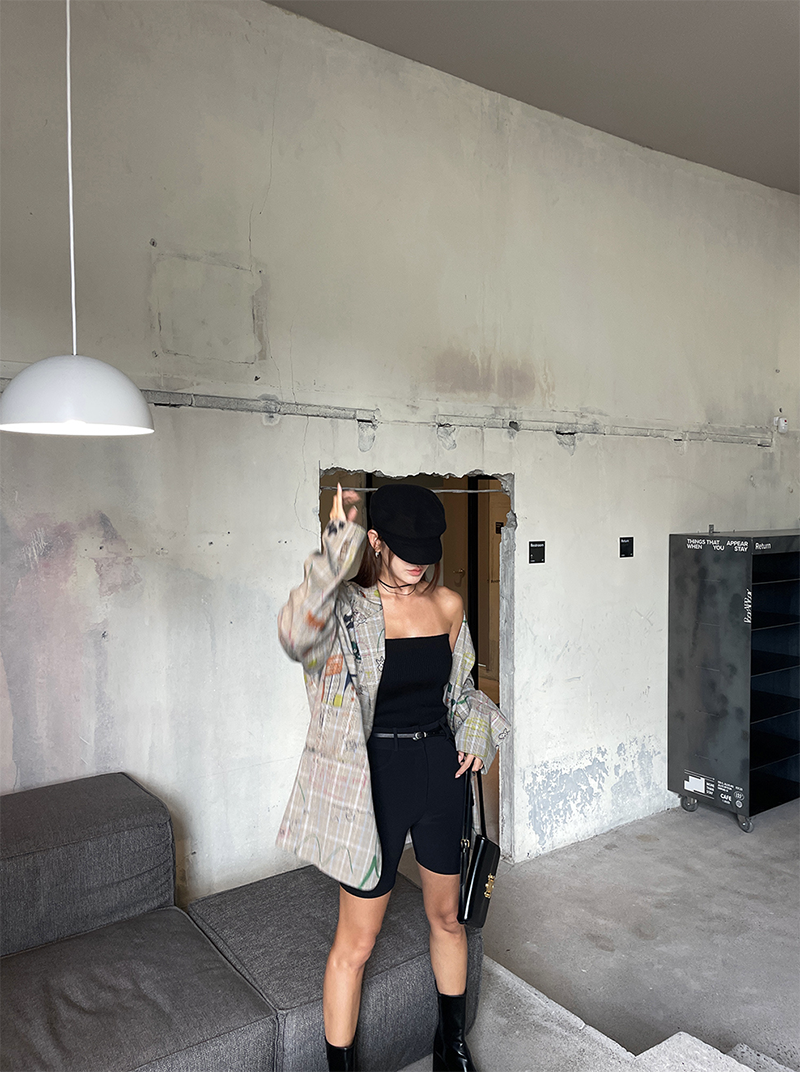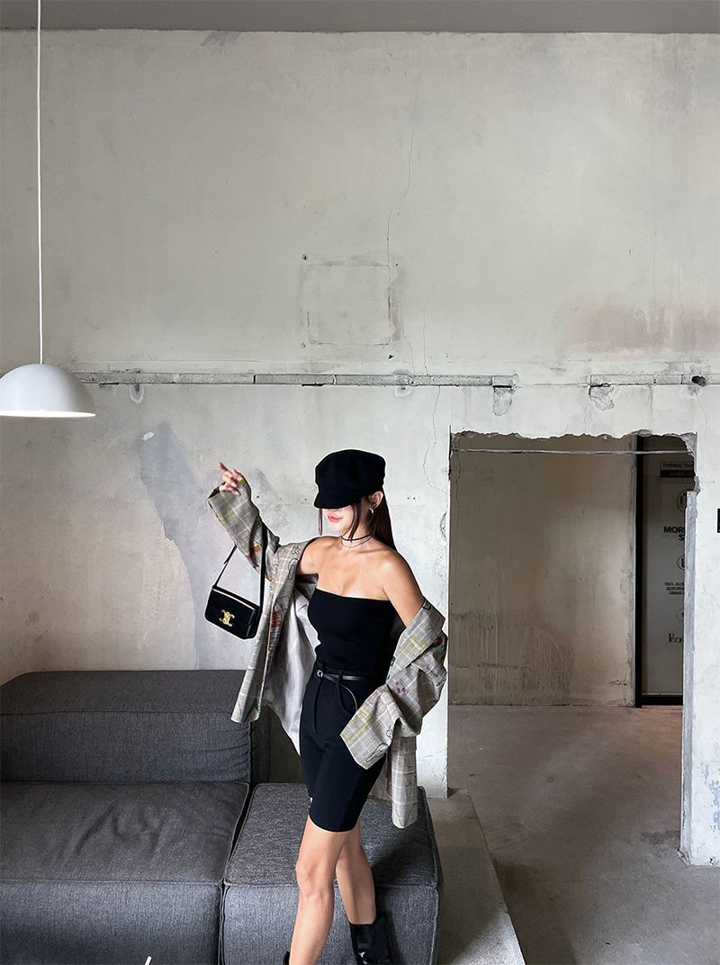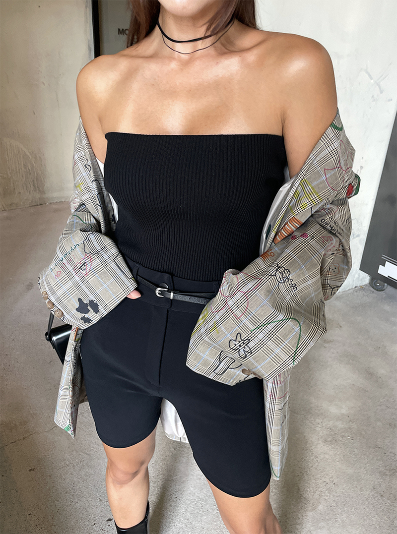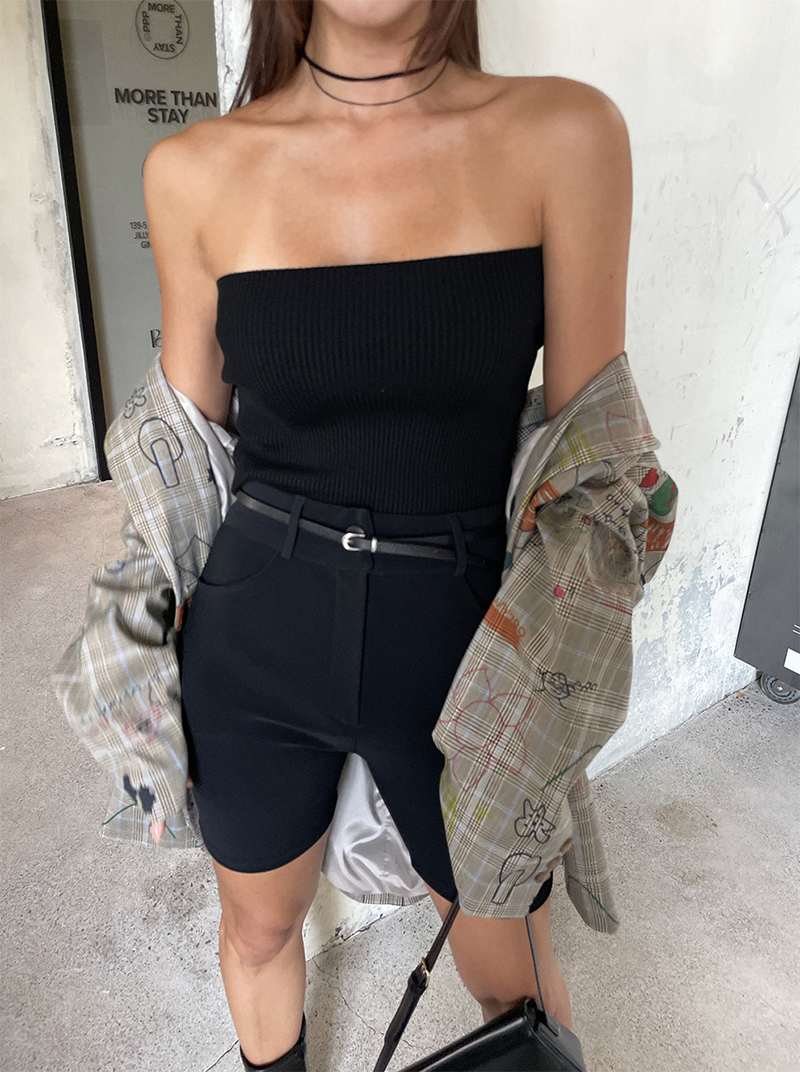 合身貼腿褲型 膝上四分剪裁