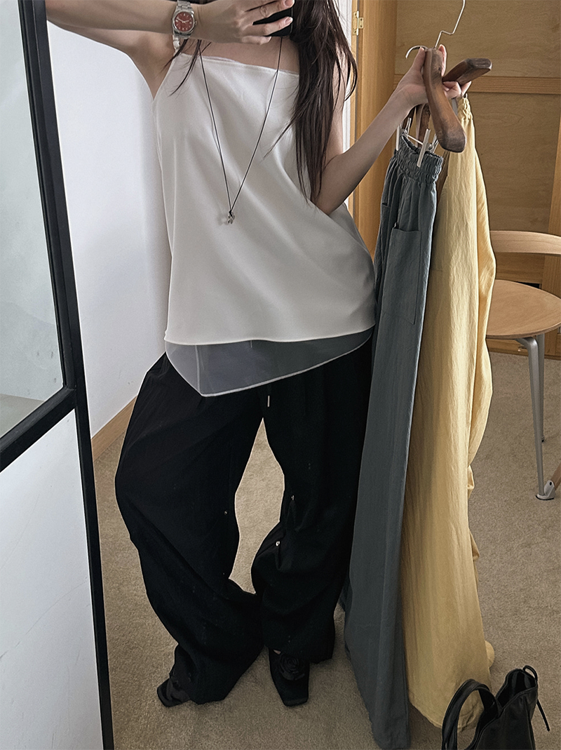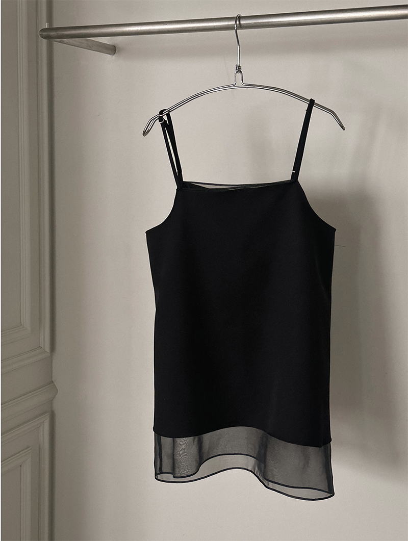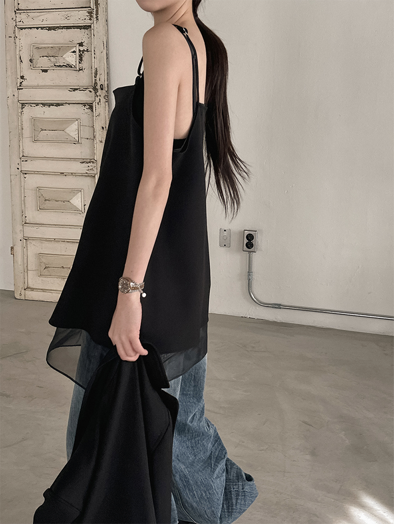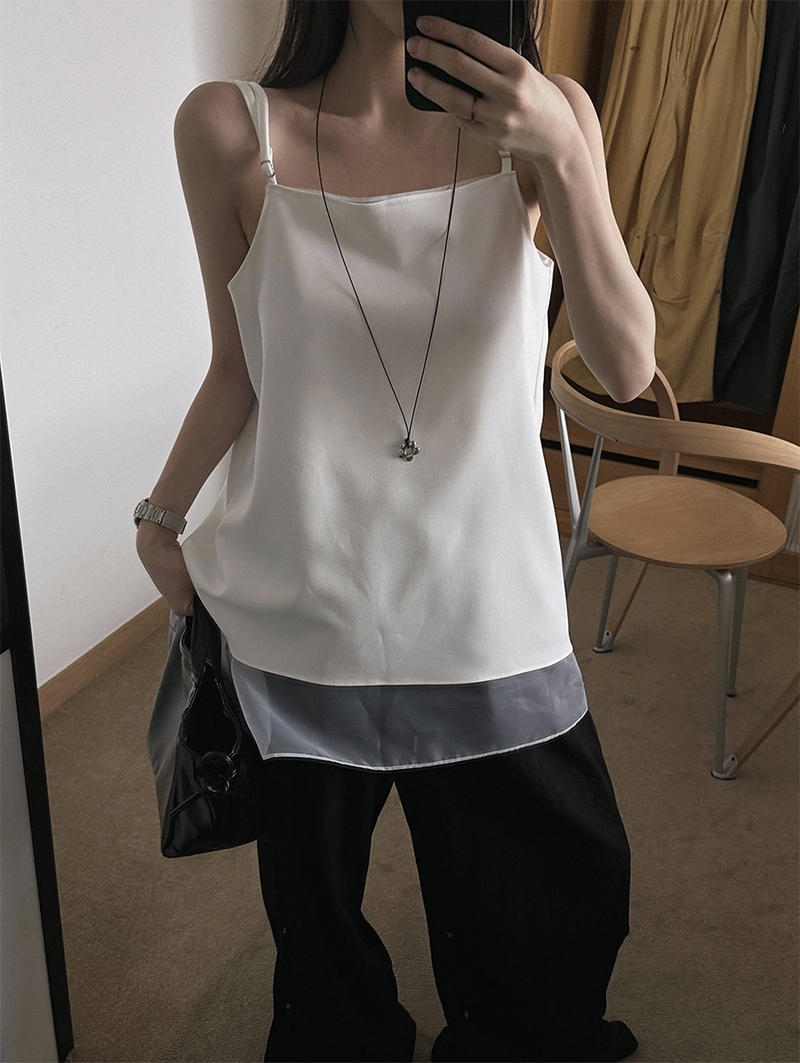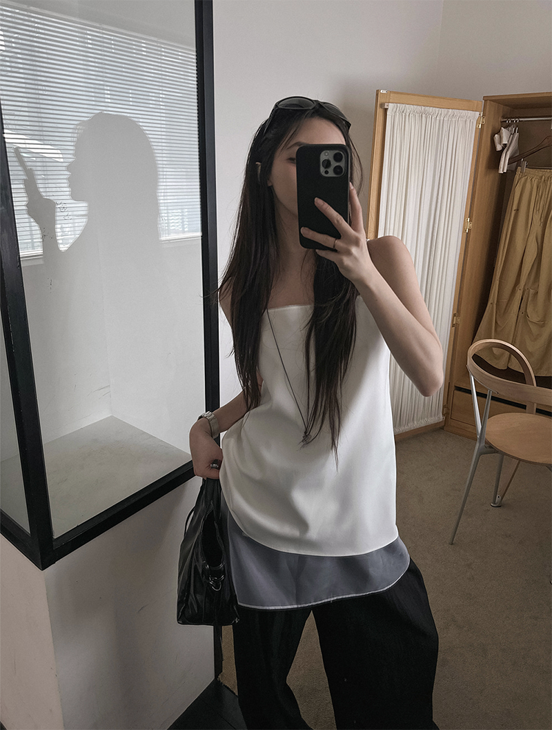 內層特別拼接微透紗質內襯,並比外層緞面略長一些