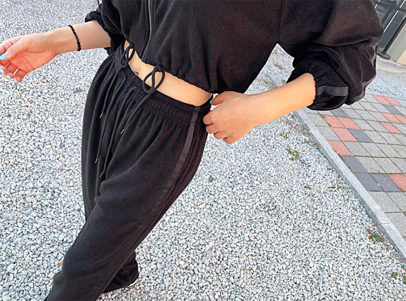 下擺束繩的顯瘦設計