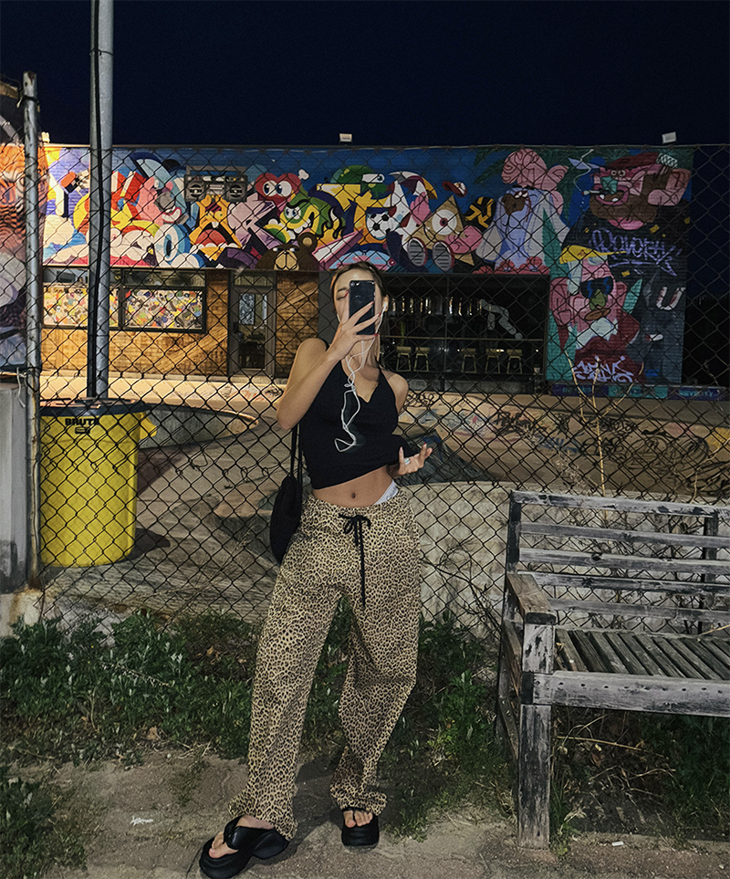 不論搭配短版上衣或簡約素T都能穿出豹棚氣場