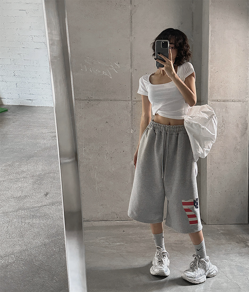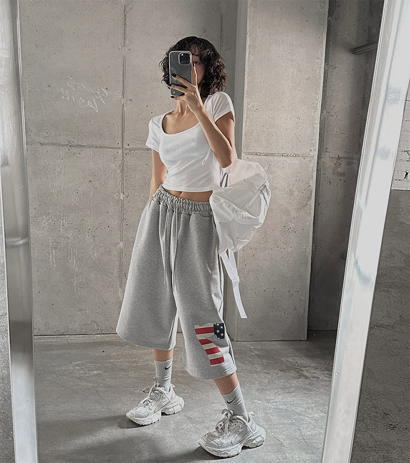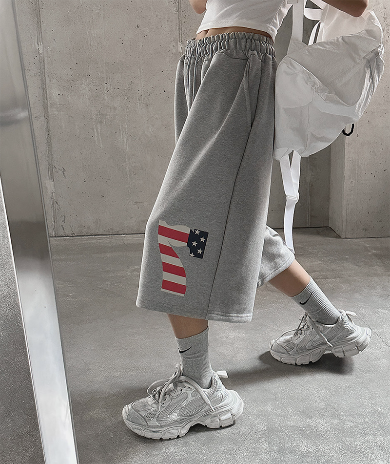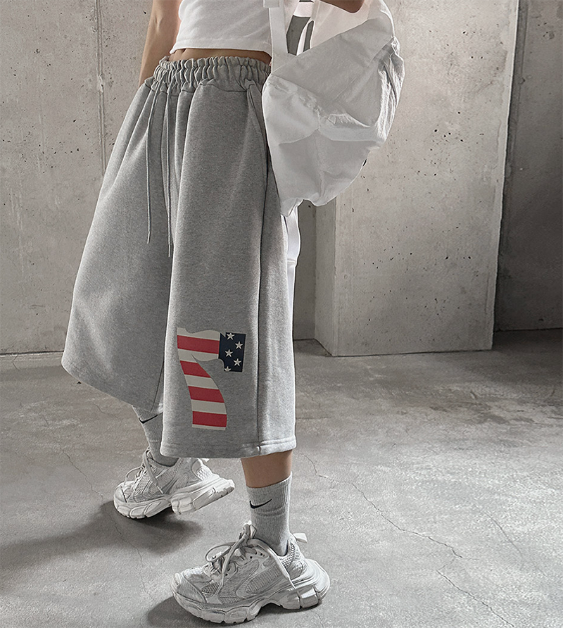 褲腳利用數字國旗紋點綴