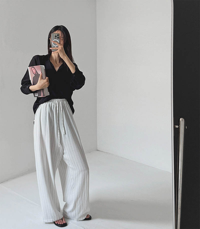 搭配清新條紋與寬鬆剪裁