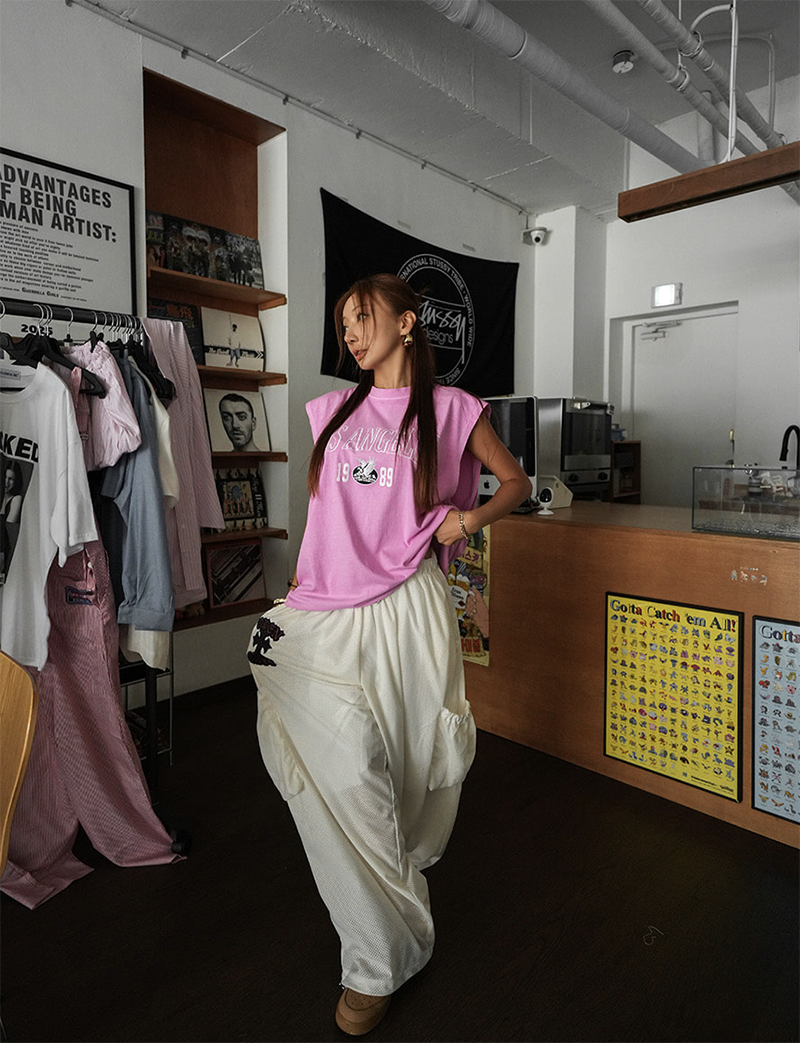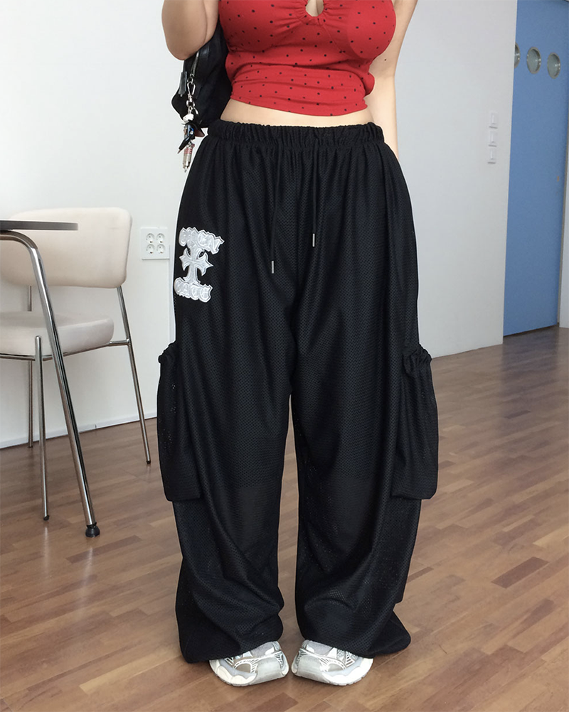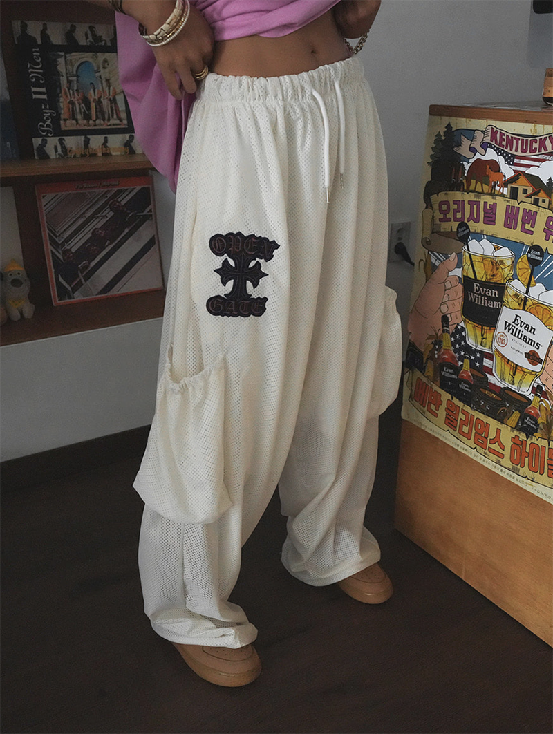 獨特不撞款的網布寬褲