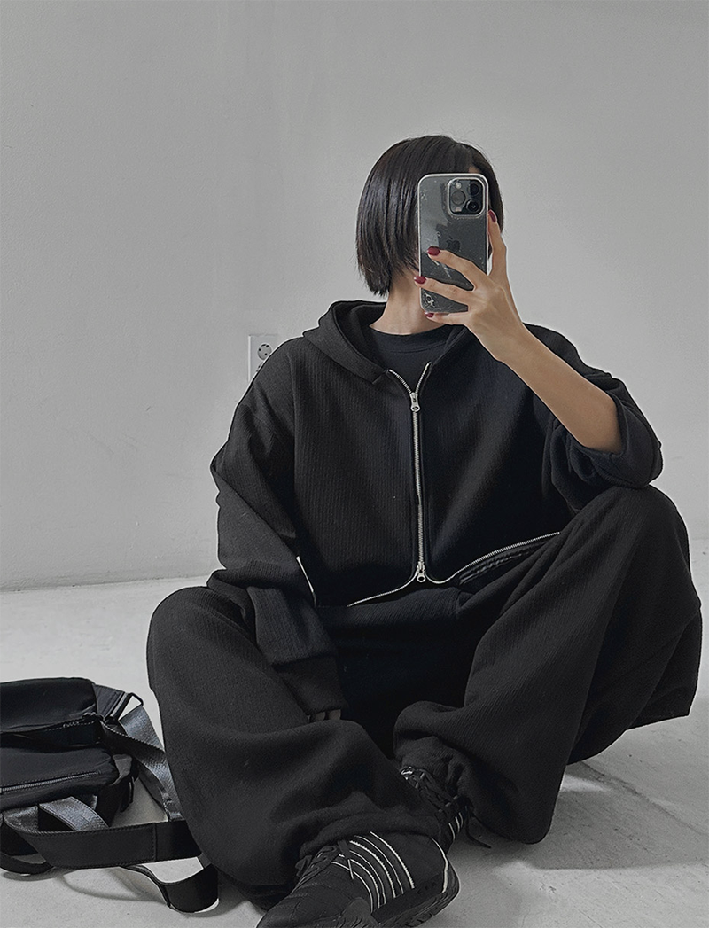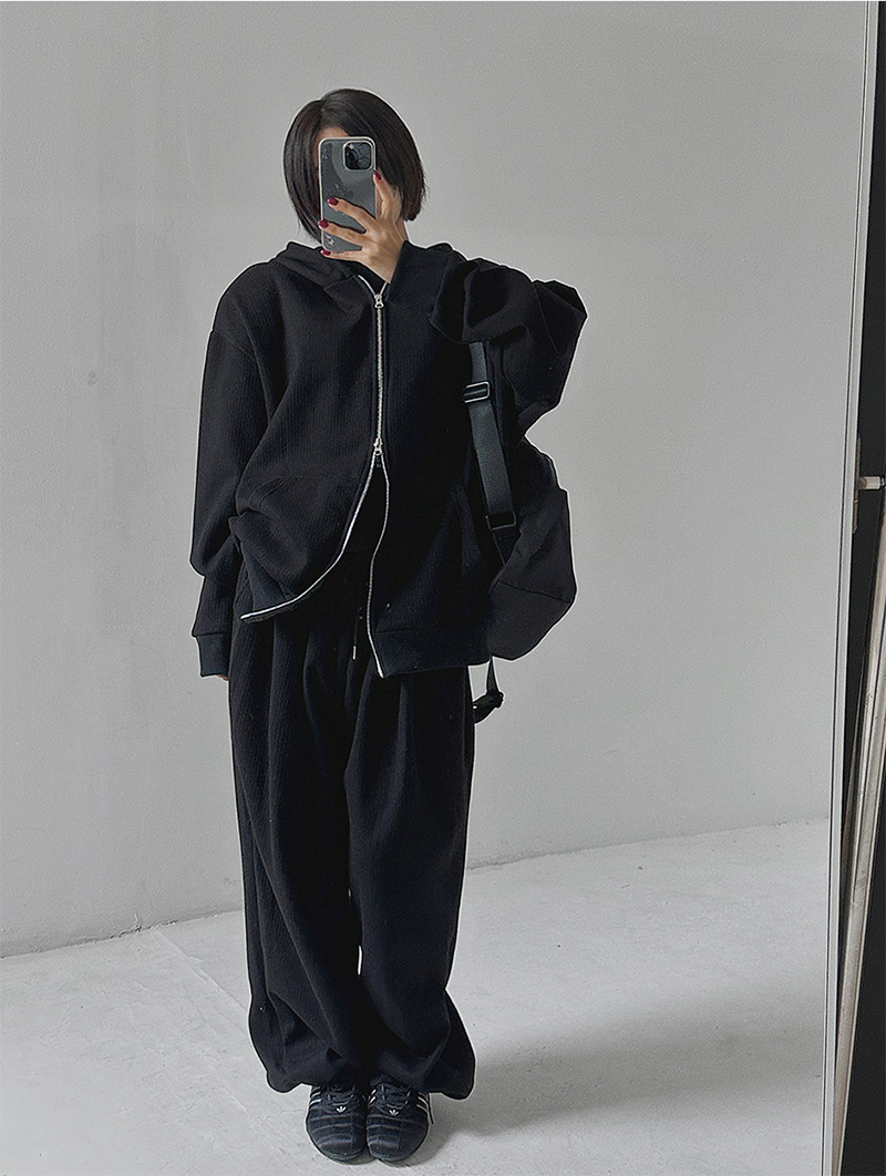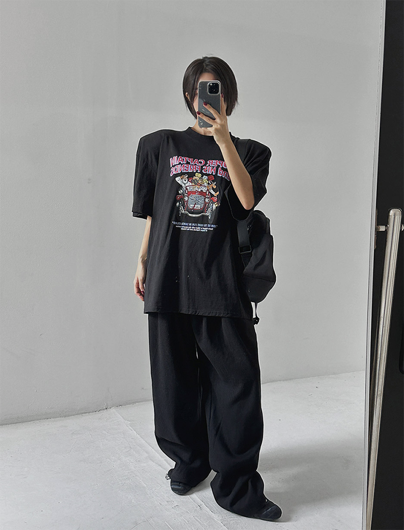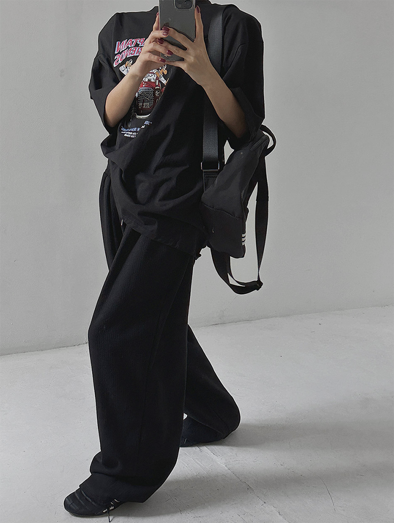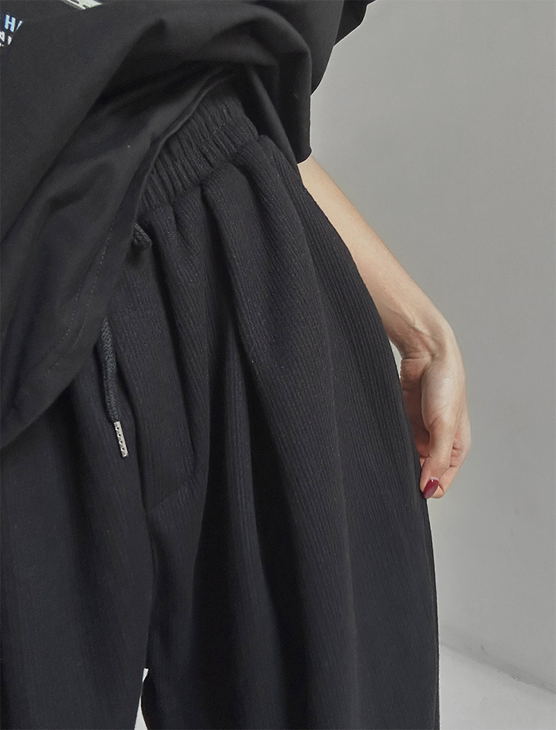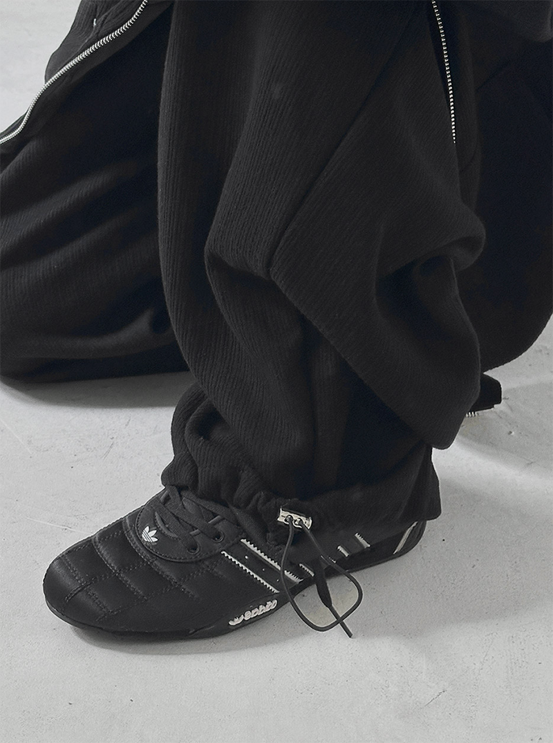 褲腳抽繩凸顯穿搭層次