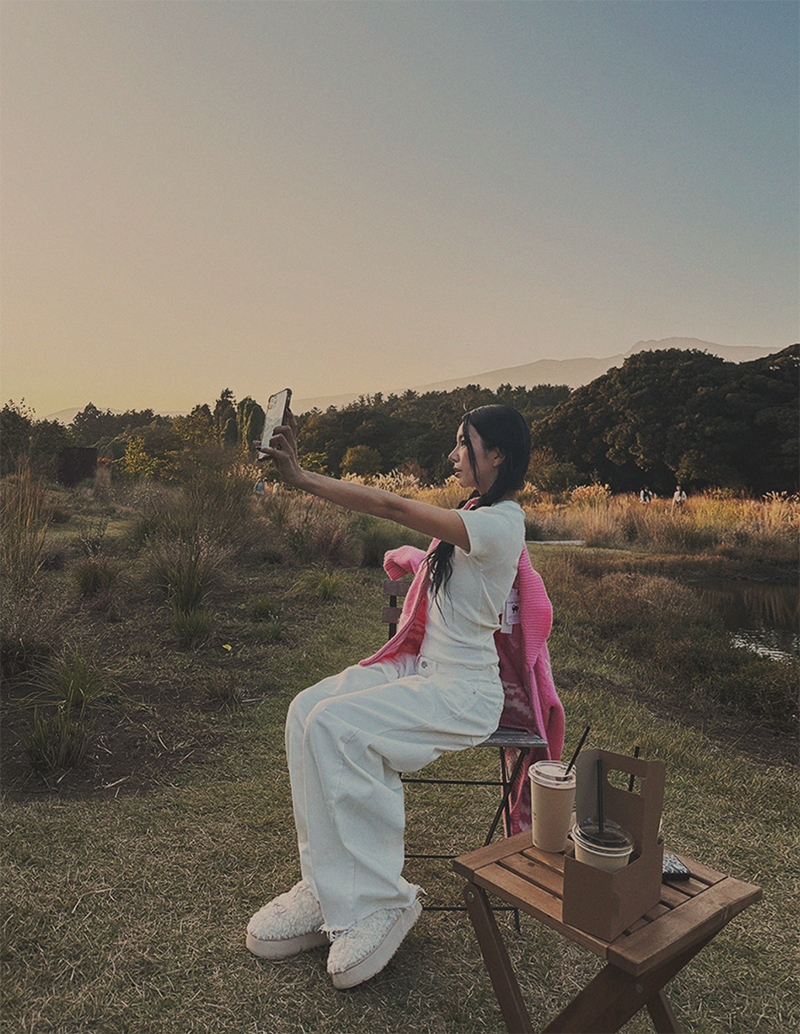 搭配褲鬚毛邊細節增添氛圍
