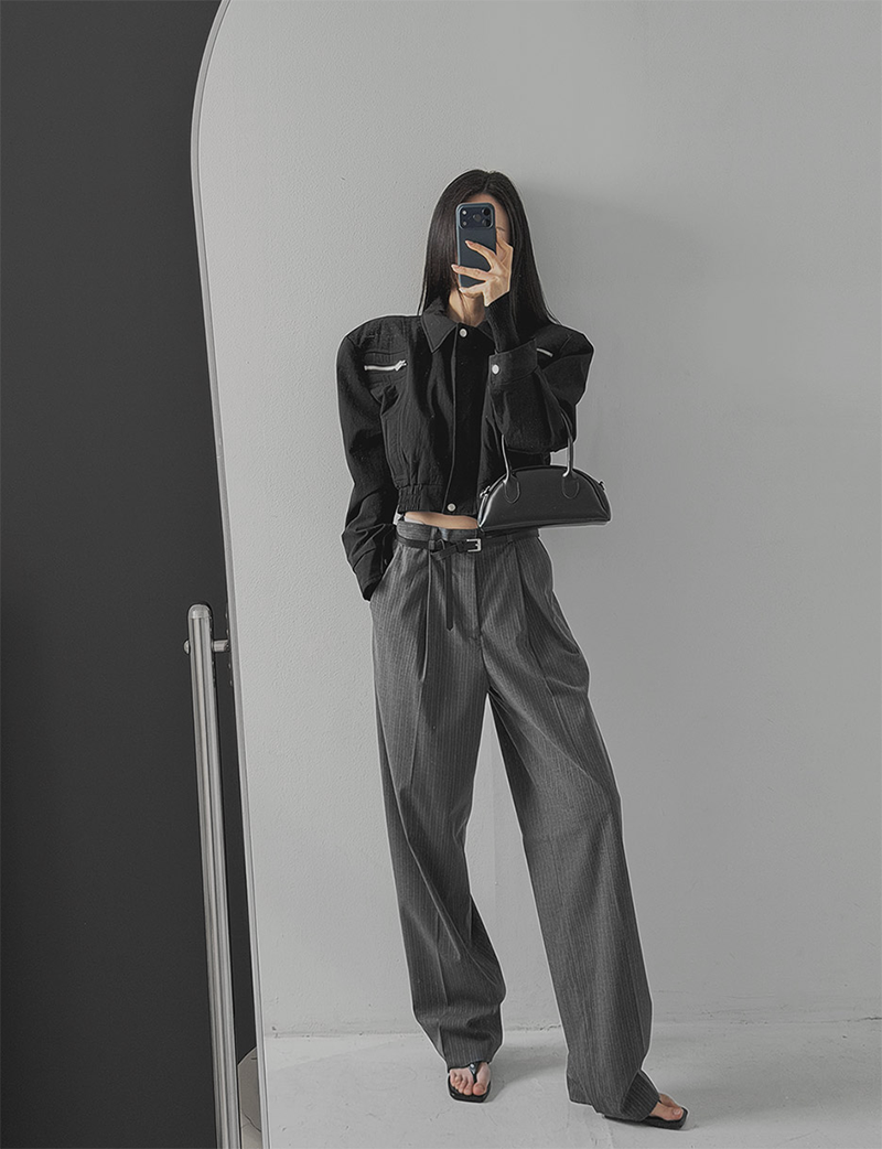 打摺細節的西裝落地褲