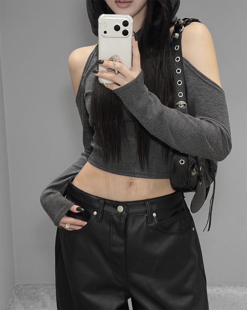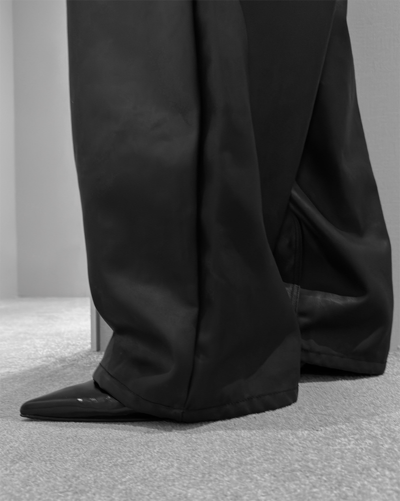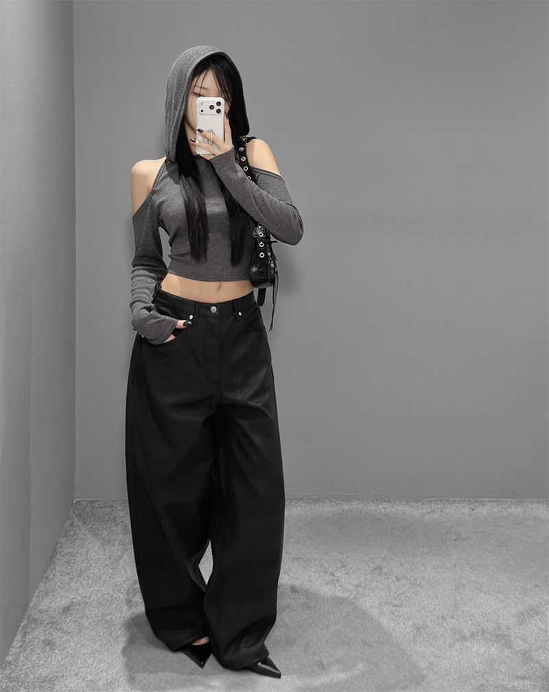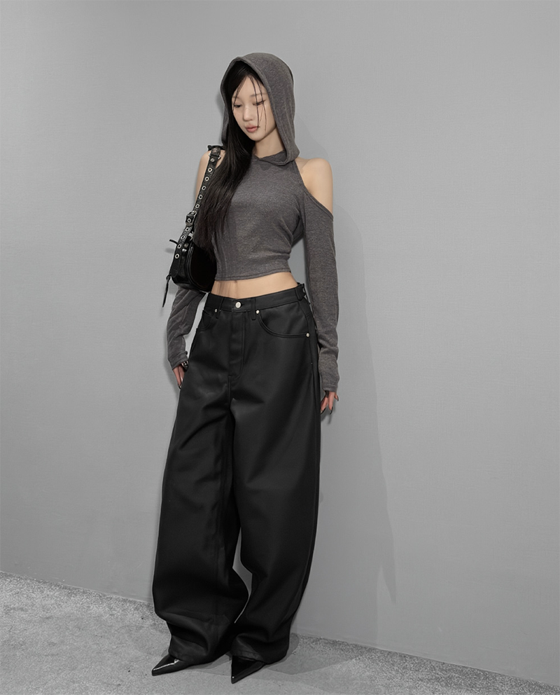 這款闊腿寬褲採用霧面仿皮革質感