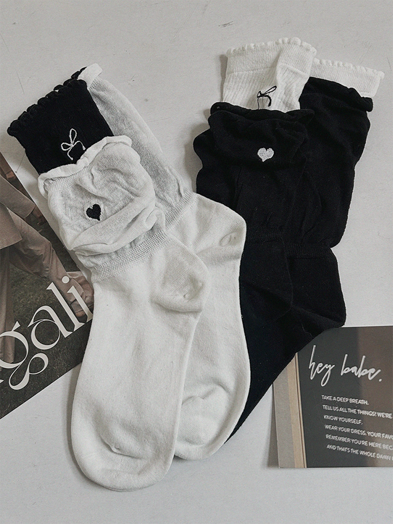 雙層感的俐落設計結合可愛的心型與蝴蝶結刺繡