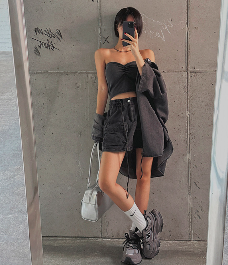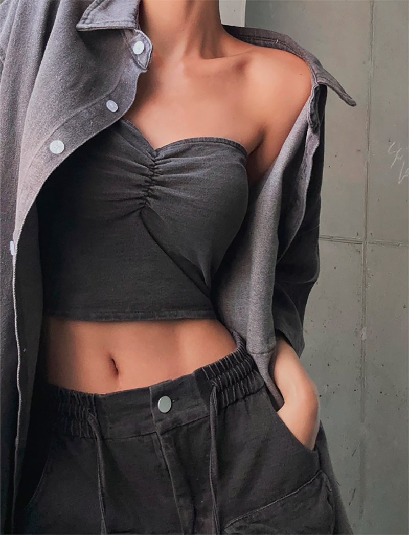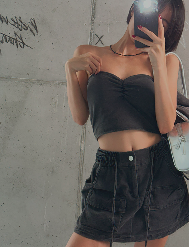 平口的短背心搭配Bra襯墊
