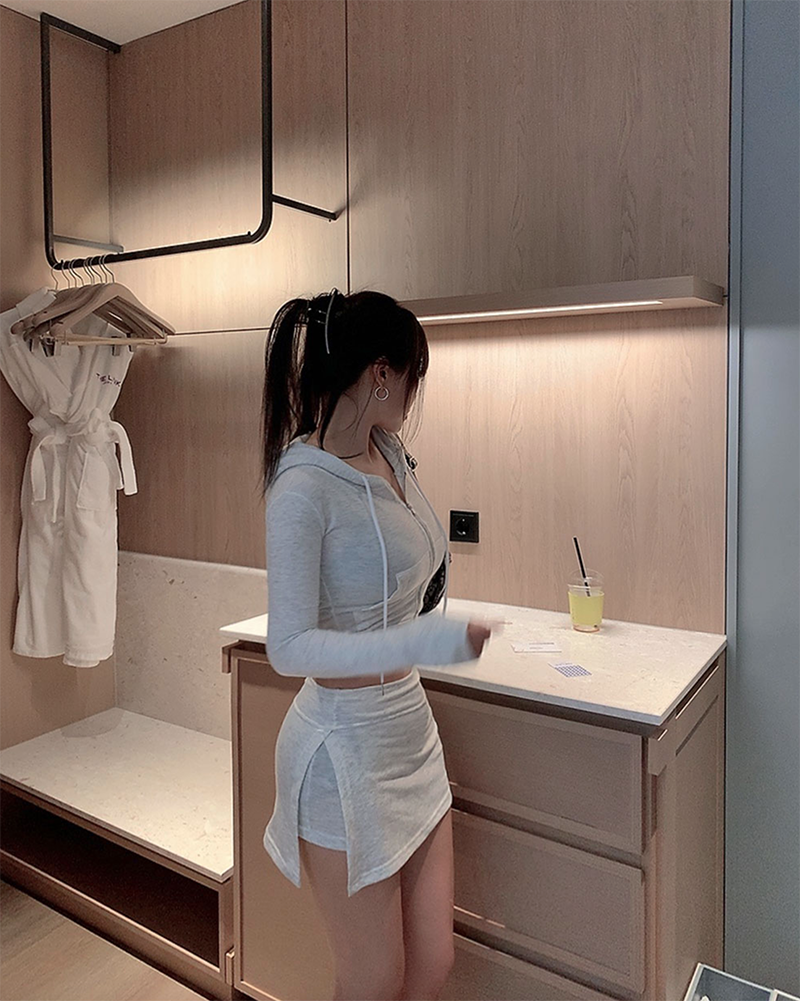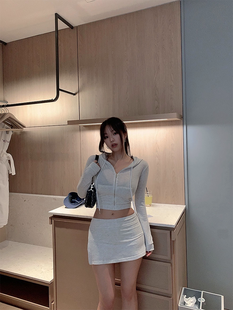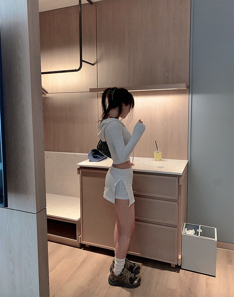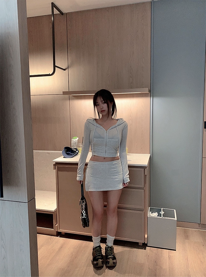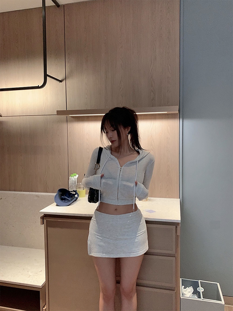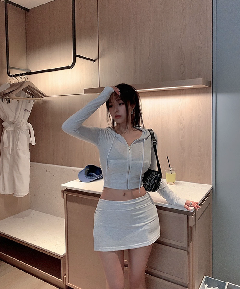 短版連帽外套搭配裙褲設計