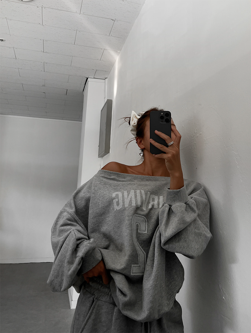 寬領衛衣展現隨性慵懶感