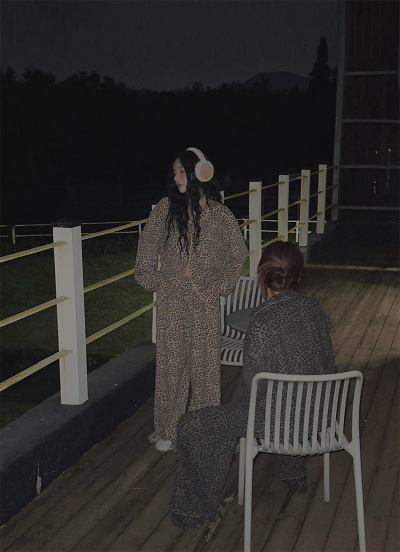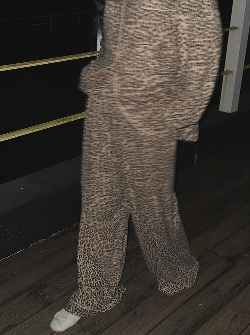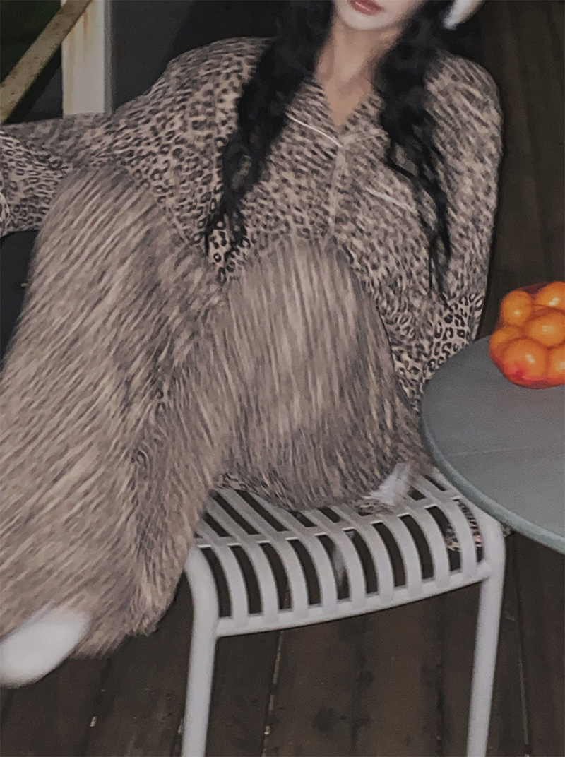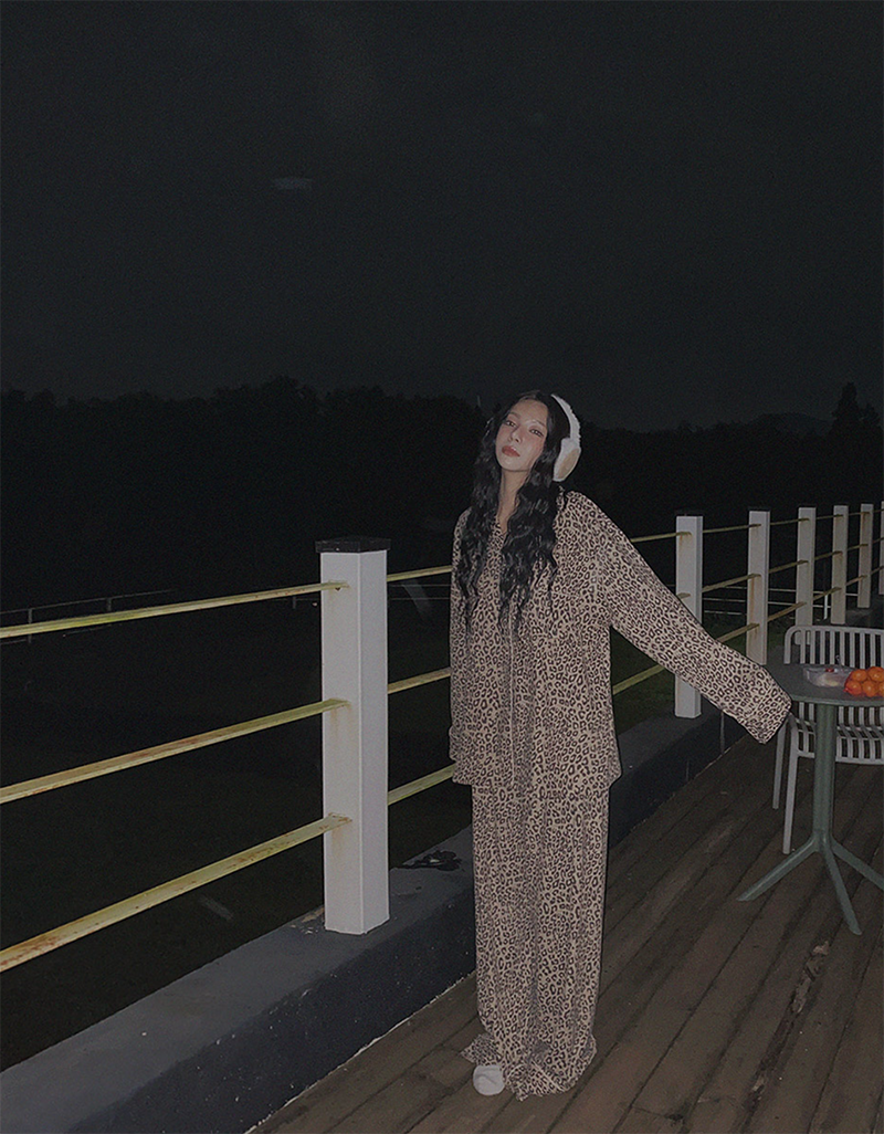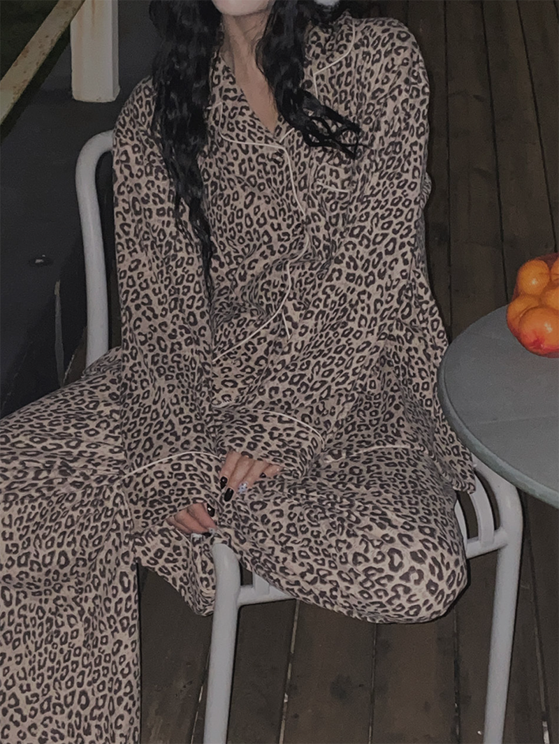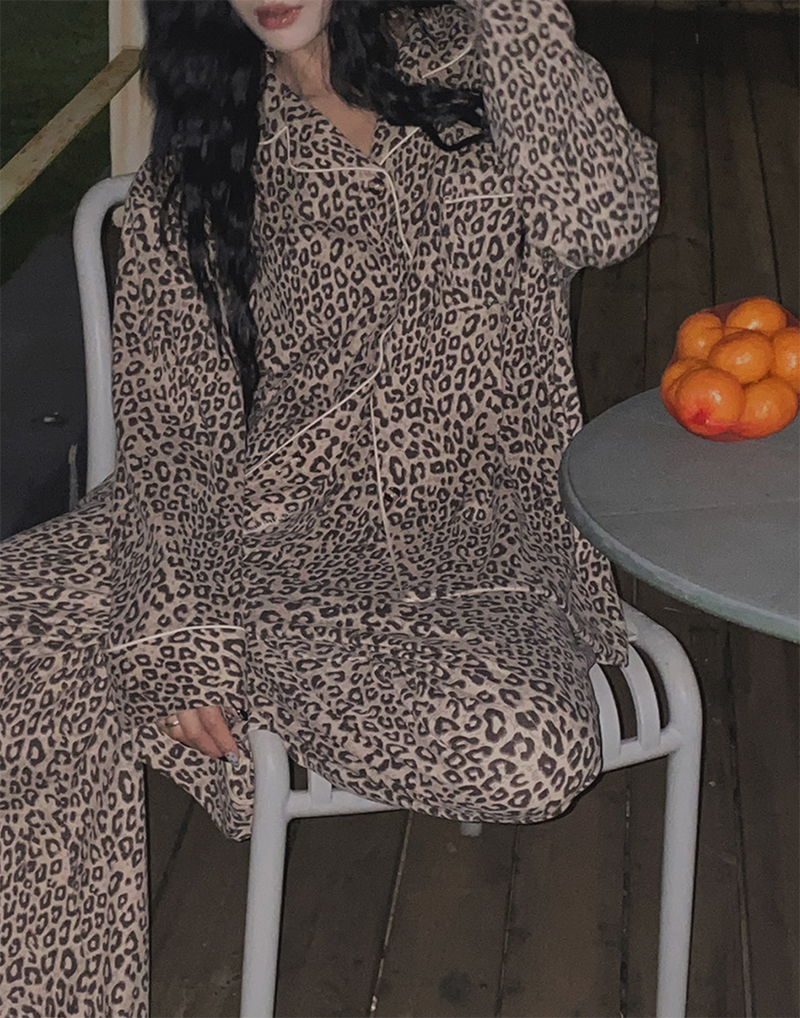 以柔軟桃皮刷毛打造的豹紋睡衣套裝