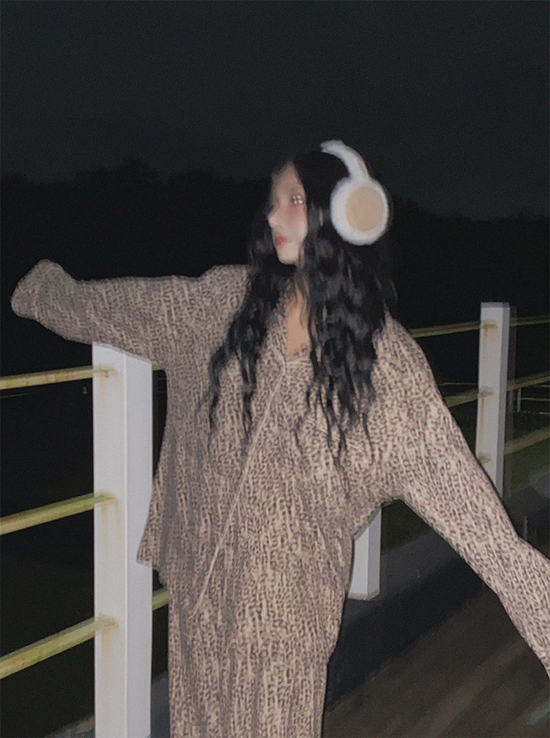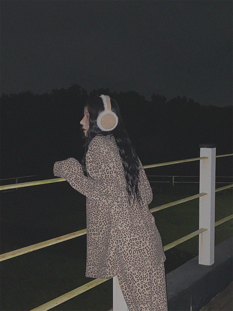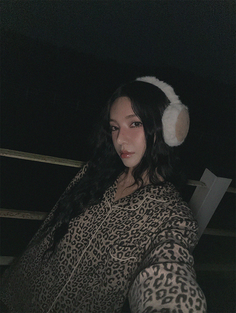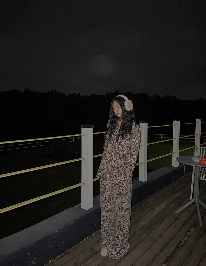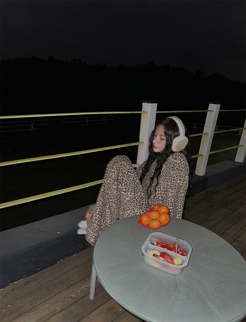 以柔軟桃皮刷毛打造的豹紋睡衣套裝