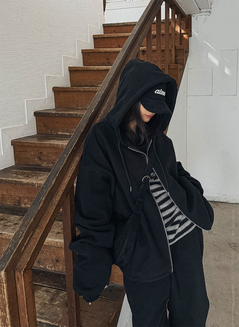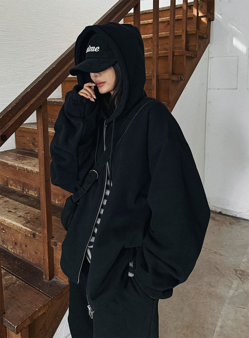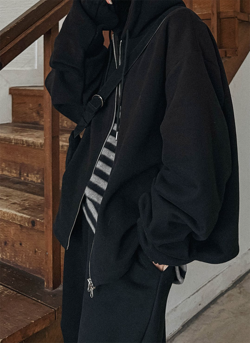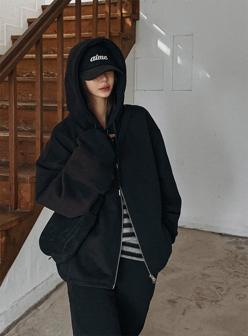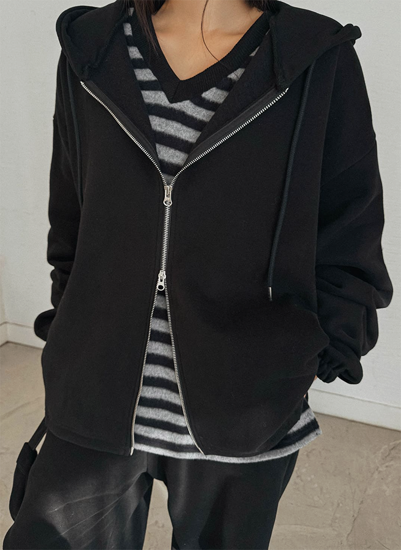 連帽外套搭配雙向拉鍊與下擺抽繩