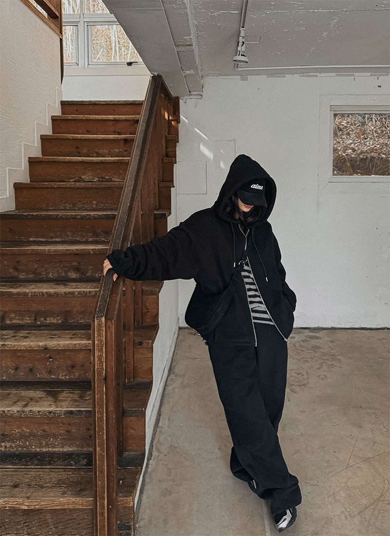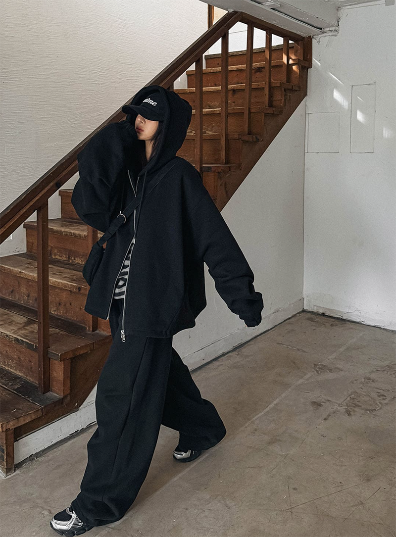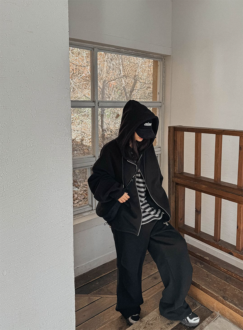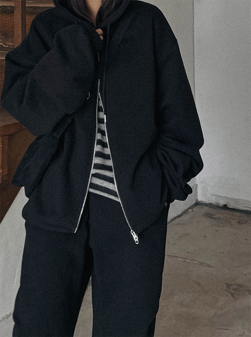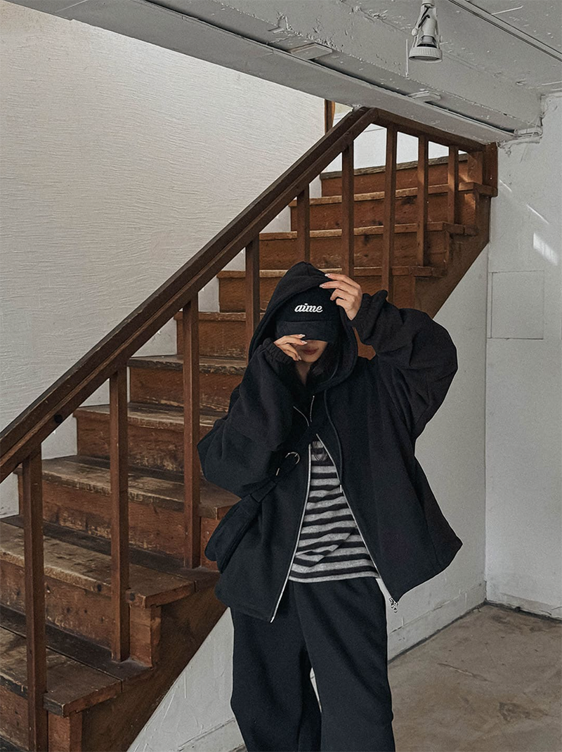 連帽外套搭配雙向拉鍊與下擺抽繩
